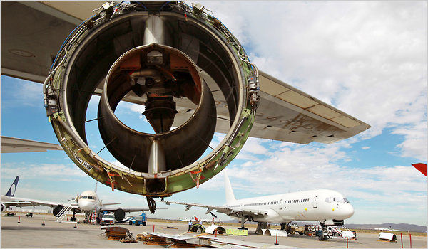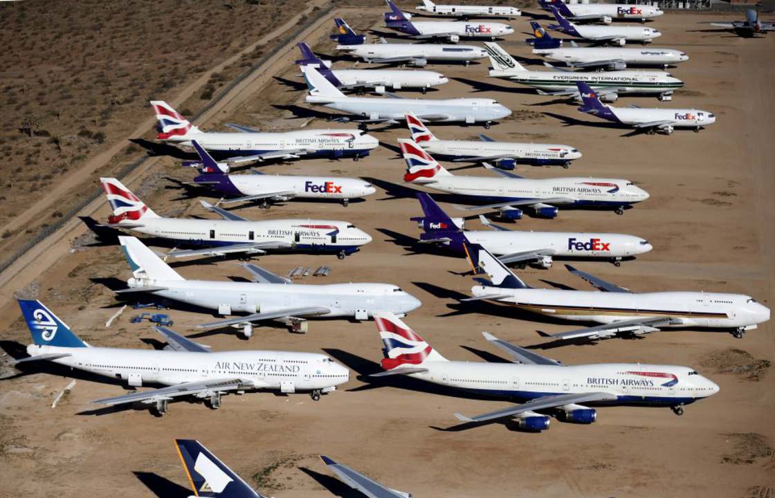 A dónde van a parar los aviones cuando mueren? Muchos de ellos al Southern California Logistics Airport of Victorville, un verdadero cementerio de aviones que se encuentra en el desierto de Mojave, al norte de Los Angeles, California. Aca, muchisimas aerolíneas no solo guardan al aire libre sus aeronaves ya obsoletas, sino también sus partes excedentes, hasta que puedan ser reutilizados, vendidos o desmantelados.