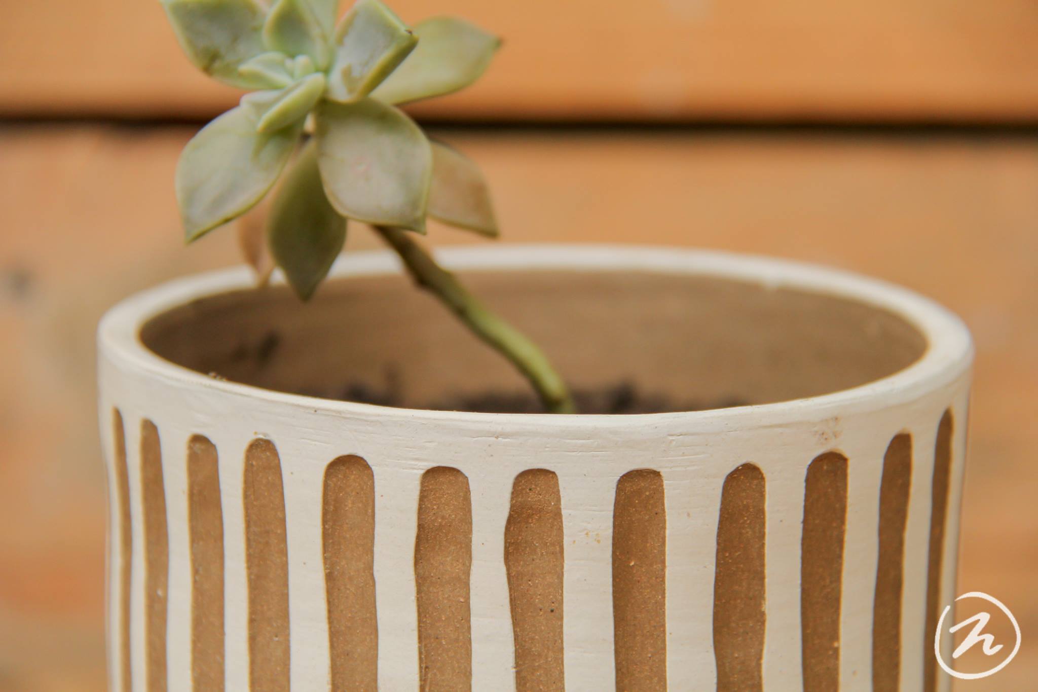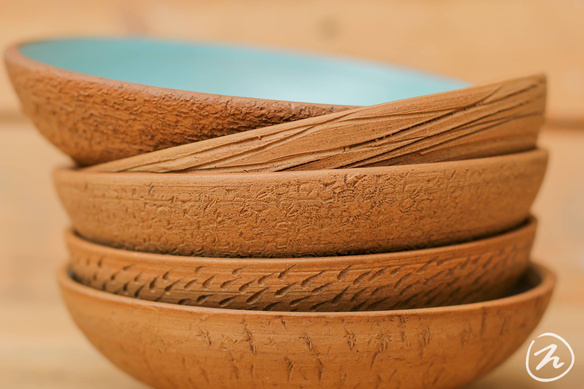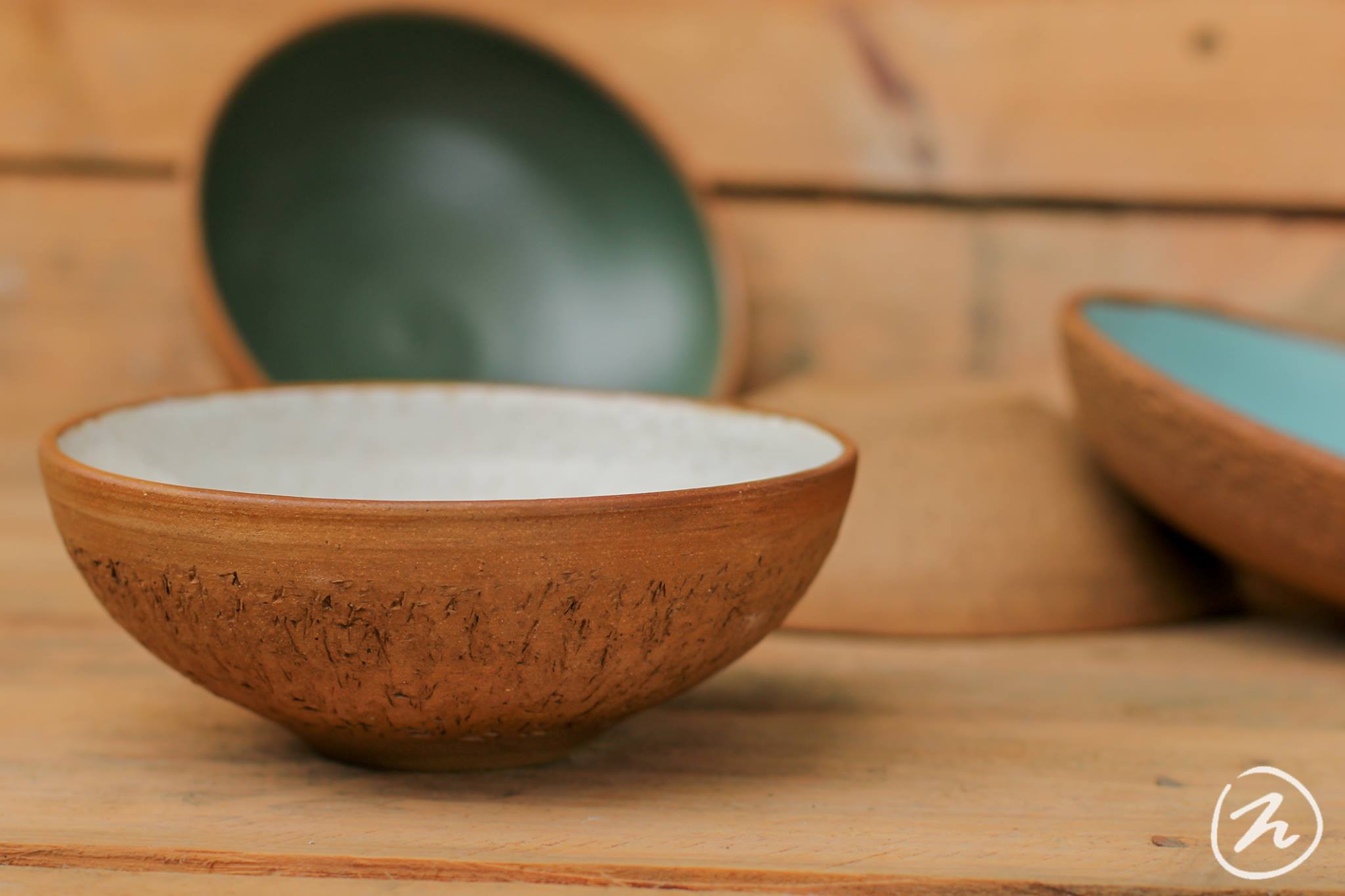 Nanomo son piezas hechas en gres, en el torno alfarero, y luego intervenidas manualmente una por una y horneadas a 1200 grados. En la mayoría trato de dejar una parte de pasta a la vista, y la otra esmaltada o engobada, que vendría a ser el atuendo. Así como la vestimenta, más allá de cuestiones estéticas lo indispensable en Nanomo es que sean objetos utilitarios.