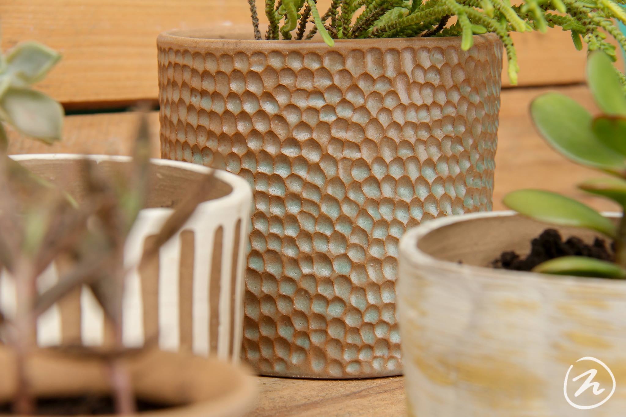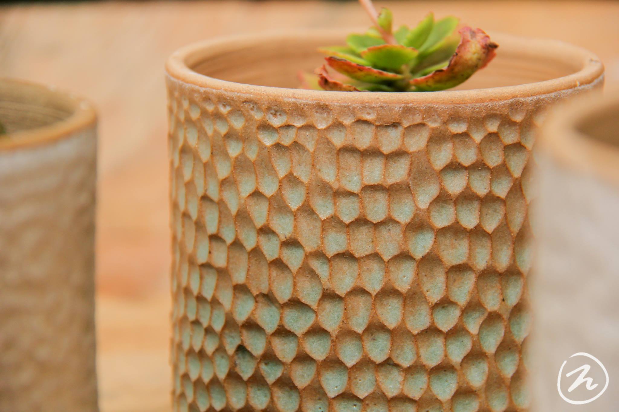Así fue, un día, después de un lindo paseo por Capilla de Señor que volví con algunos frutos, ramitas y piedritas. Y las plasmé en una maceta colgante que estaba haciendo. Ya venía jugando con las texturas pero haciéndolas con herramientas. Y me gustó mucho el resultado. Empecé a hacerlo mas seguido. A juntar mas de estos objetos inútiles y a sacar de los cajones y estantes algunos viejos. De pronto sentí que podía plasmar emociones, experiencias y recuerdos en las piezas. Y por primera vez sentí esa integridad entre las piezas y yo. Y sin planearlo mucho surgió Nanomo. La verdad es que no tenía pensado dasarrollar un emprendmiento todavía. Trabajo ocho horas por día de otra cosa, tengo el horno a 20 km del torno y el resto del taller. Y además mostrar lo que uno hace… pero bueno el entusiasmo logró organizar todo lo demás.
