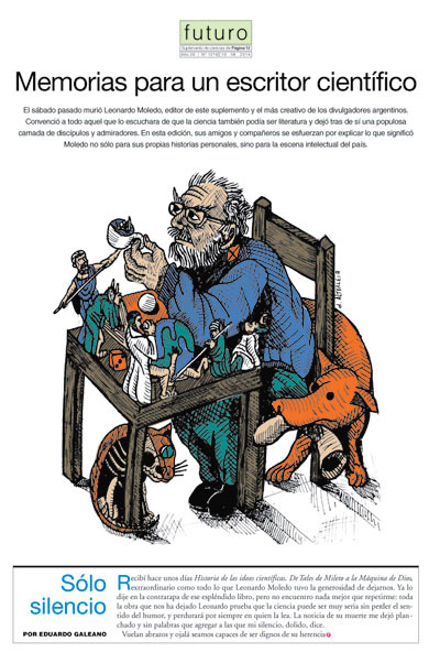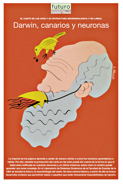 Hace casi 10 años viene haciendo las tapas para un suplemento de ciencia, del diario página 12, que recientemente cerró porque falleció Leonardo Moledo, el divulgador científico más importante del país , quien lo dirigía. Hizó 225 tapas y acá dejamos algunas.