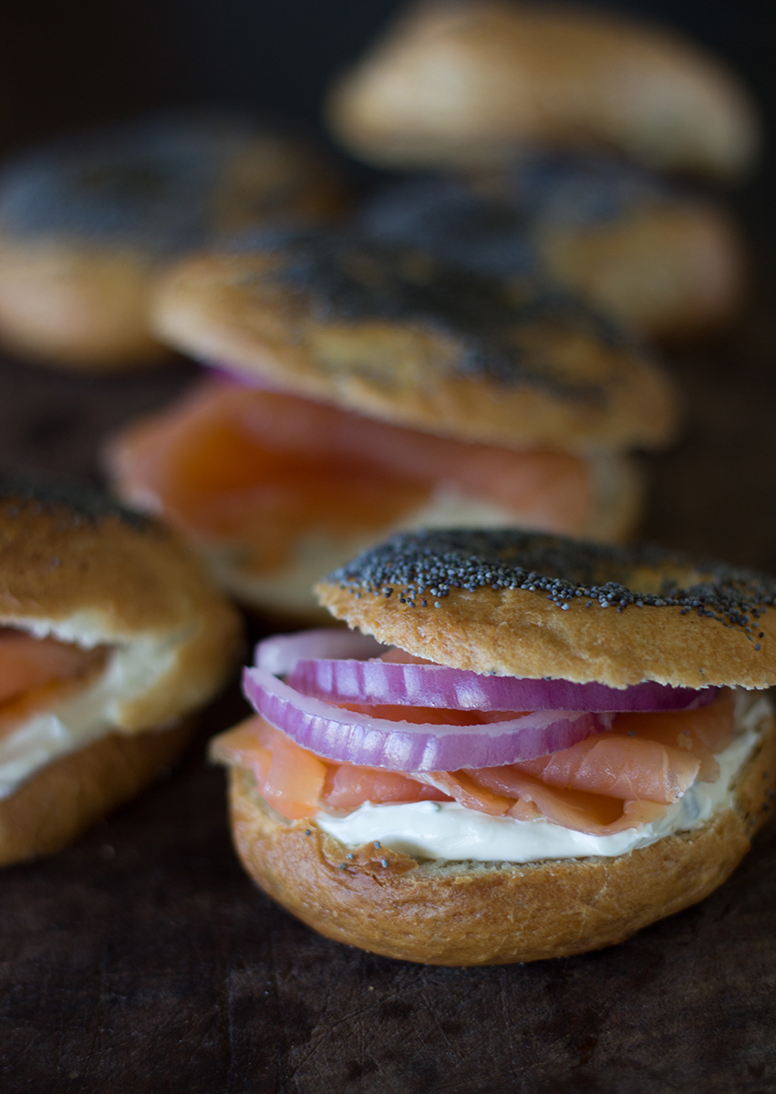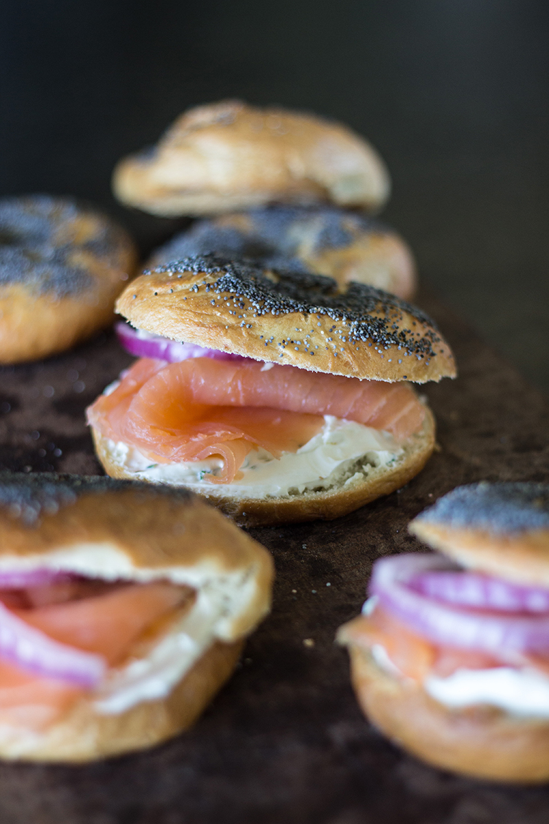 • Salmón ahumado en fetas (calculá 50 gramos aproximadamente para cada bagel)