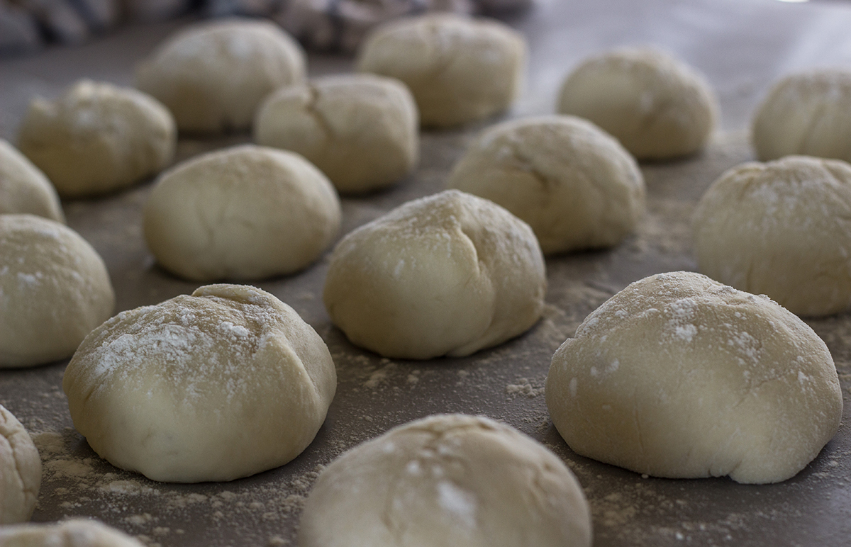Dividí la masa en 12 trozos y hacé 12 bolitas. Colocalas sobre una bandeja enharinada y dejalas reposar, cubiertas por un film, unos 25 minutos para que leven (crecerán mucho en tamaño).