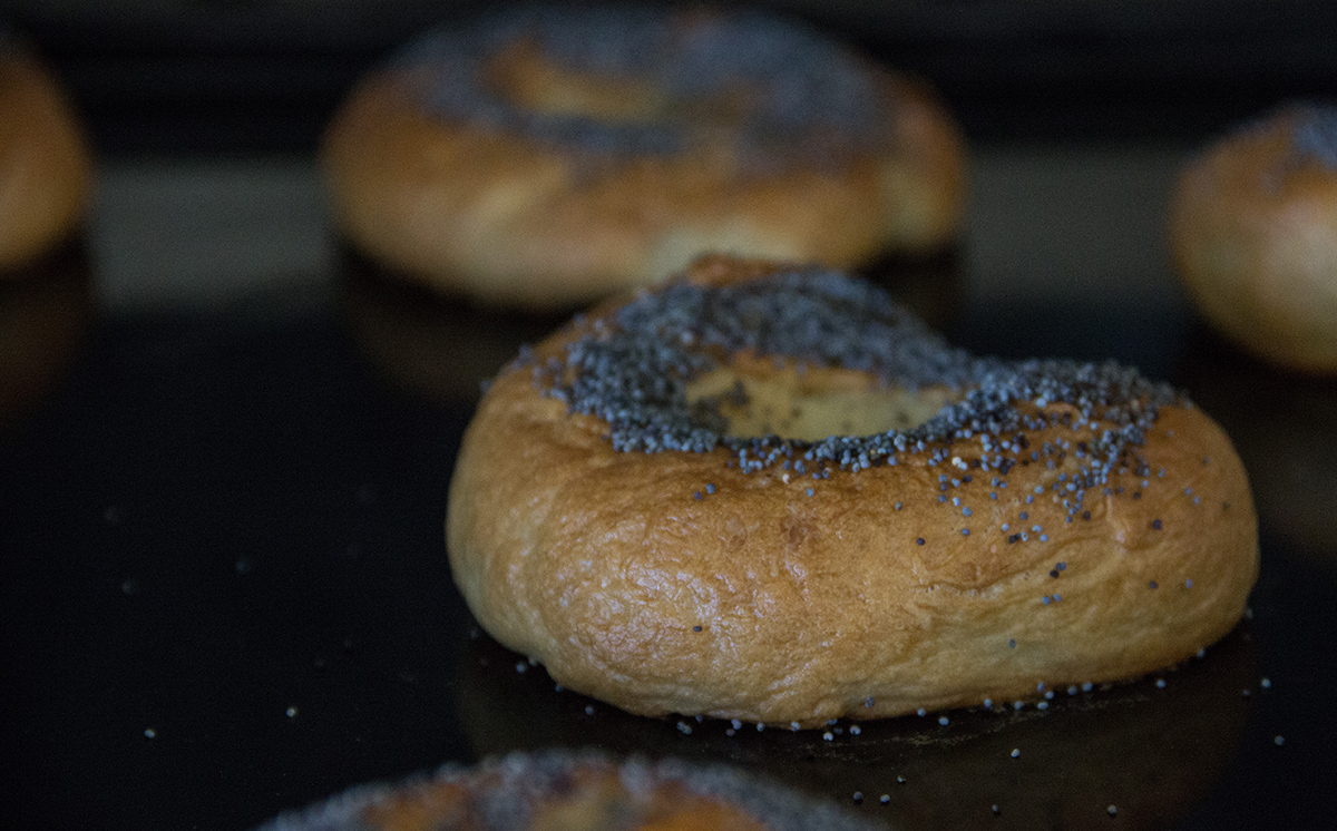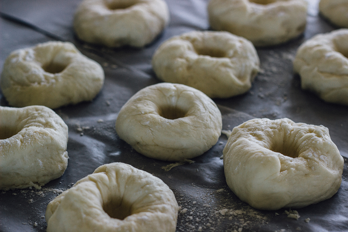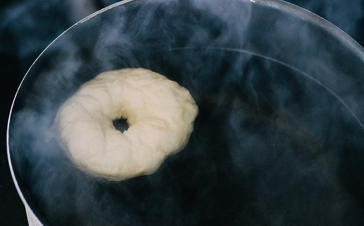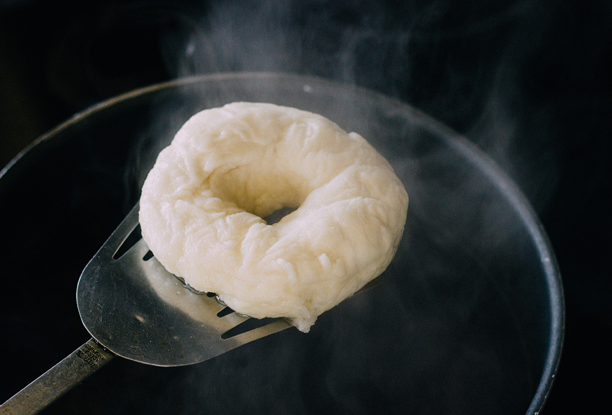 Vas a hervir cada bagel durante minuto y medio (podemos ir metiéndolos de dos en dos o de tres en tres. Sólo tenés que recordar darlos vuelta a los 65 segundos, deben pasar por el agua hirviendo por ambos lados).