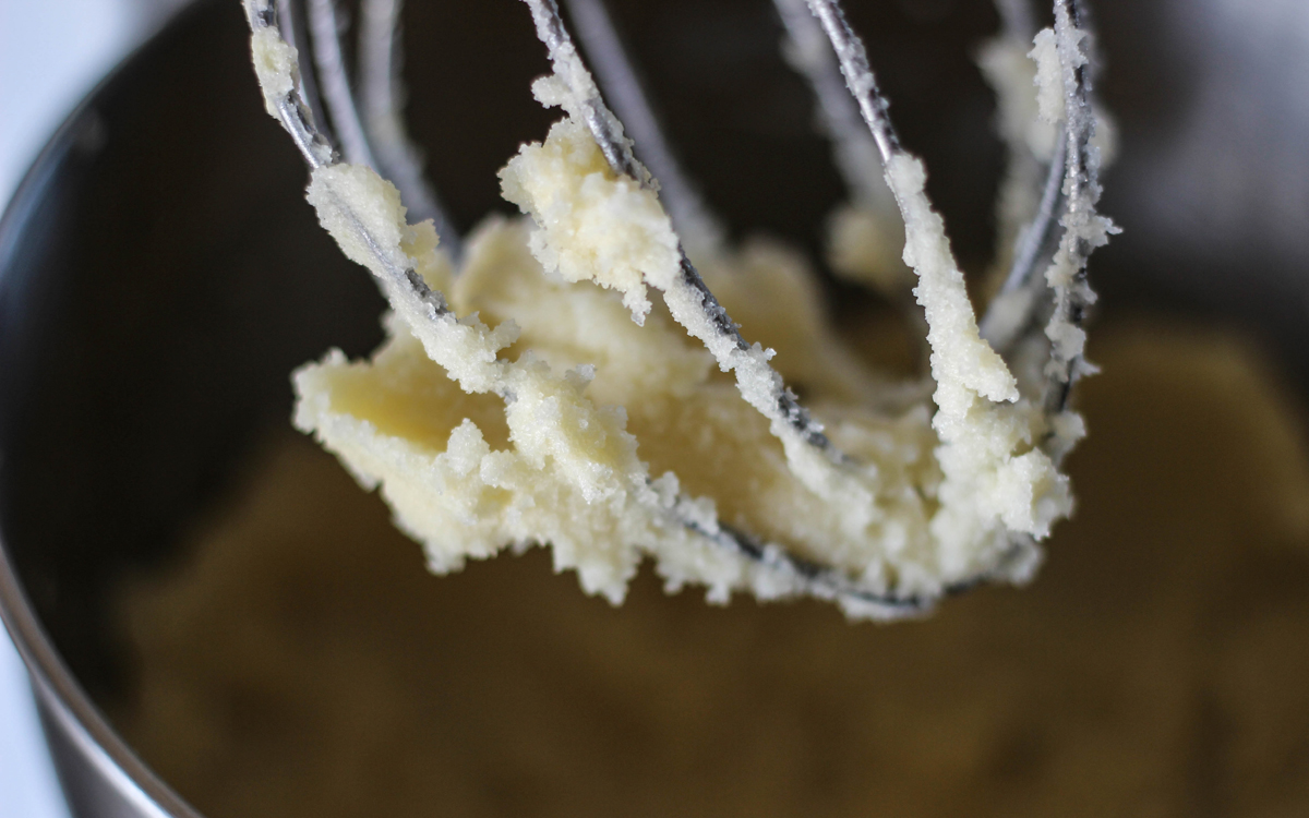 Una vez que esté todo bien mezclado, incorporá lentamente la mezcla de la harina con el polvo para hornear.