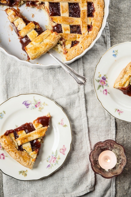 • Con un palo de amasar, estirá la masa hasta que quede de 1 centímetro de espesor aproximadamente. Cortá tiritas finas y armá un enrejado por encima del membrillo. Listo, ¡al horno!