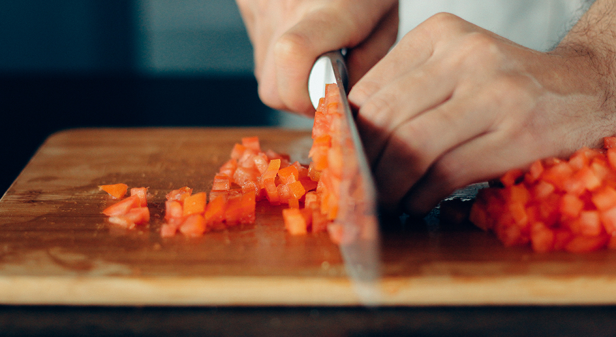 Despepitá el pimiento (sacándole todas las semillas) y córtalo en brunoise.