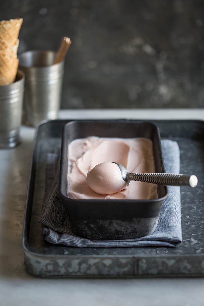 Si llegás a tener una máquina para hacer helado, el proceso es ligeramente distinto. El líquido colado lo llevás durante 3 horas al freezer, y luego lo volcás en la máquina, junto con los huevos y el Campari. Mezclá durante 5 a 8 minutos, decantá la mezcla en un bowl previamente congelado, cubrilo y llevalo al freezer hasta que sea momento de servir.