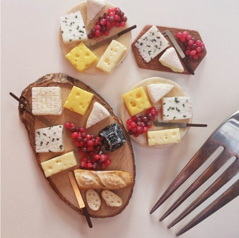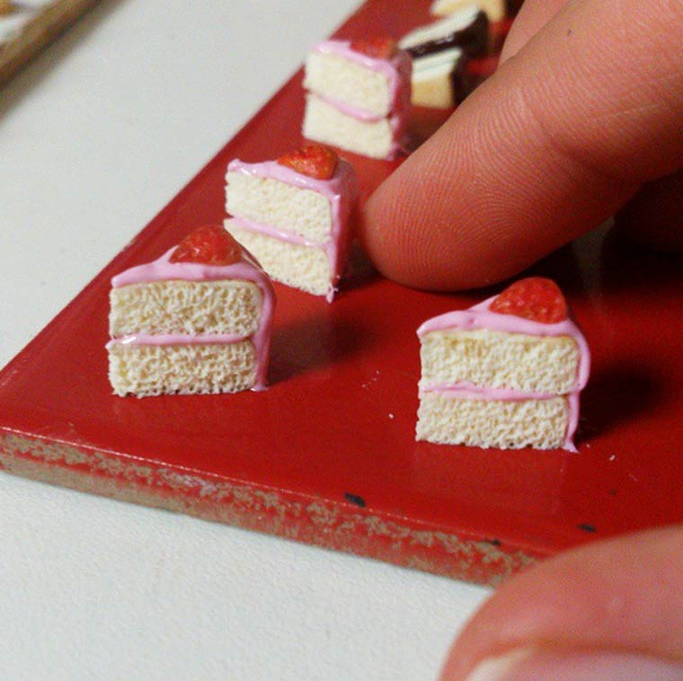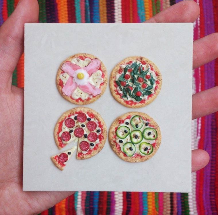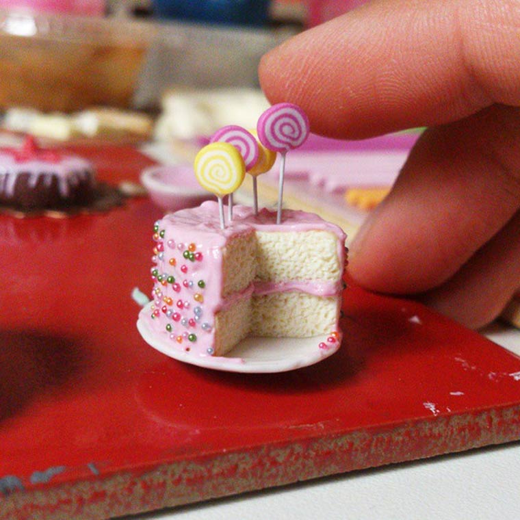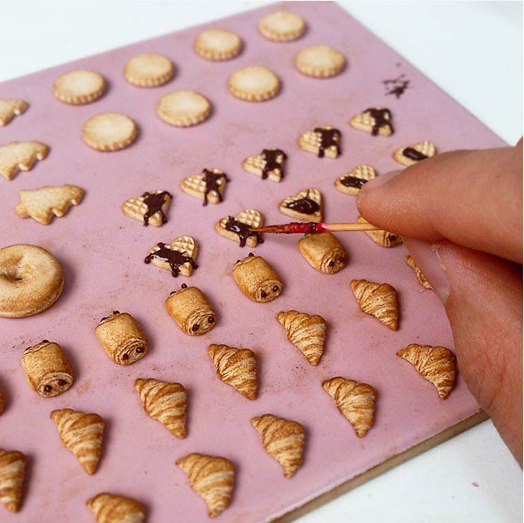 Nuestras piezas preferidas son, igualmente, todas las relacionadas con la repostería y los dulces. Mini porciones de tortas, helados, donuts y hasta facturas, la artista no le hace asco a nada.