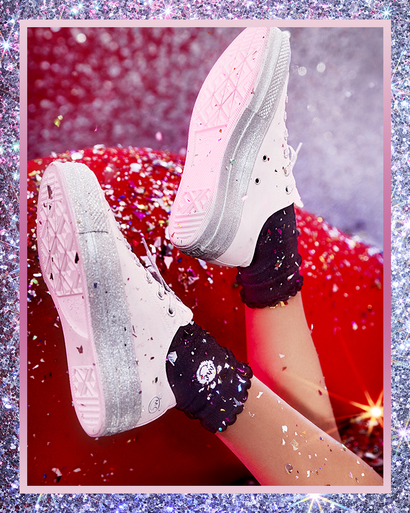 Converse y Miley Cyrus finalmente se unieron para dar lugar a una colección de glitter y dibujos búlgaros, que celebra el espíritu libre de miley y la búsqueda de la autoexpresión.