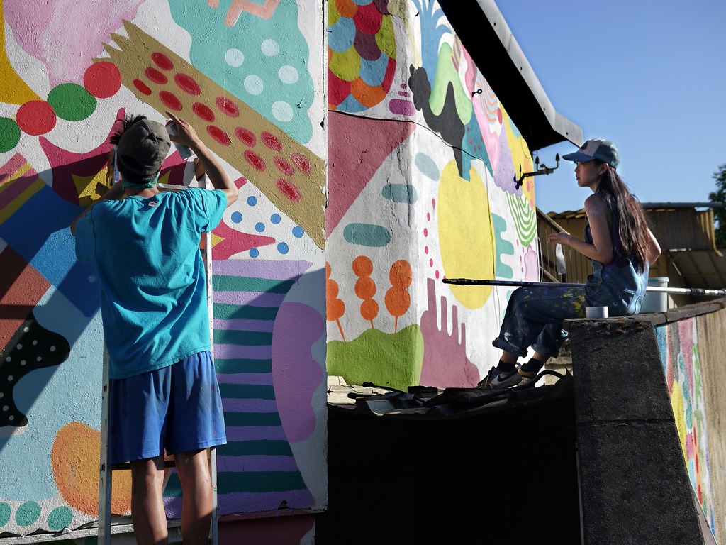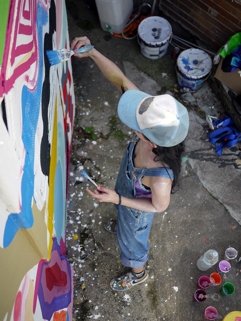 MINA HAMADA, de origen japonés pero afincada en Barcelona desde 2009, centra su trabajo en la pintura, la ilustración y los murales. Con un estilo caracterizado por el color, el ritmo y la improvisación, Mina transmite sus buenas vibraciones a través de sus formas libres y orgánicas.