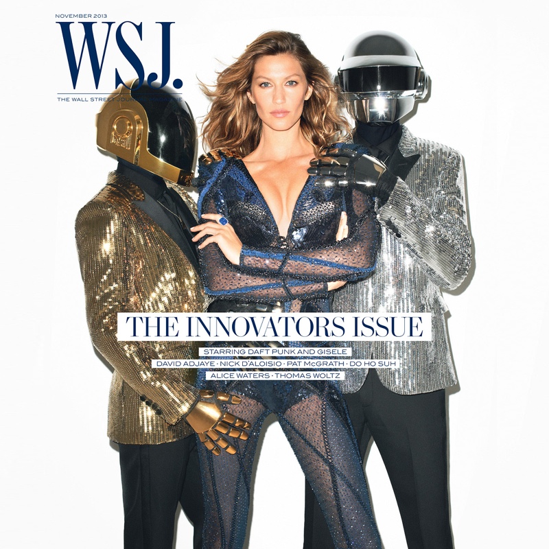 Dos robots y una supermodelo, para la nueva editorial de Noviembre de la revista WSJ, Terry Richardson se encargó de fotografiar al dúo Daft Punk junto con la top Gisele Bundchen. Fondo blanco, como nos tiene acostumbrados el controversial Terry, y mucho brillo cortesía de Saint Laurent y Atelier Versace. Like por un millón para una ecuación perfecta.