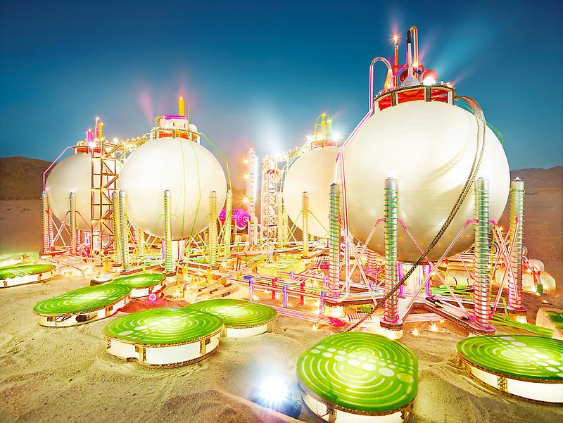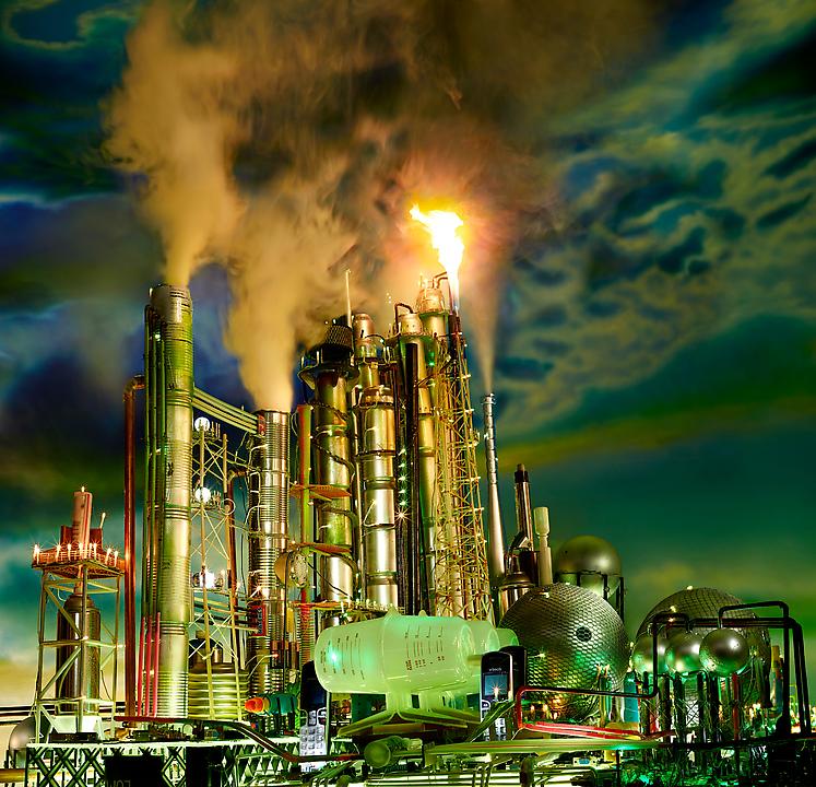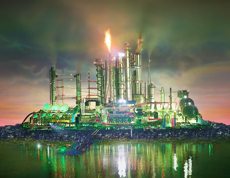 Escenas sexuales, mucha piel y modelos famosas fueron reemplazadas por estaciones de servicio, refinerías y fábricas en miniatura, siempre con la brillante estética que lo caracteriza. “Trato de usar la belleza para atraer a la gente en vez de repelerla” cuenta el artista que ahora se reintenta como un apasionado del medio ambiente.