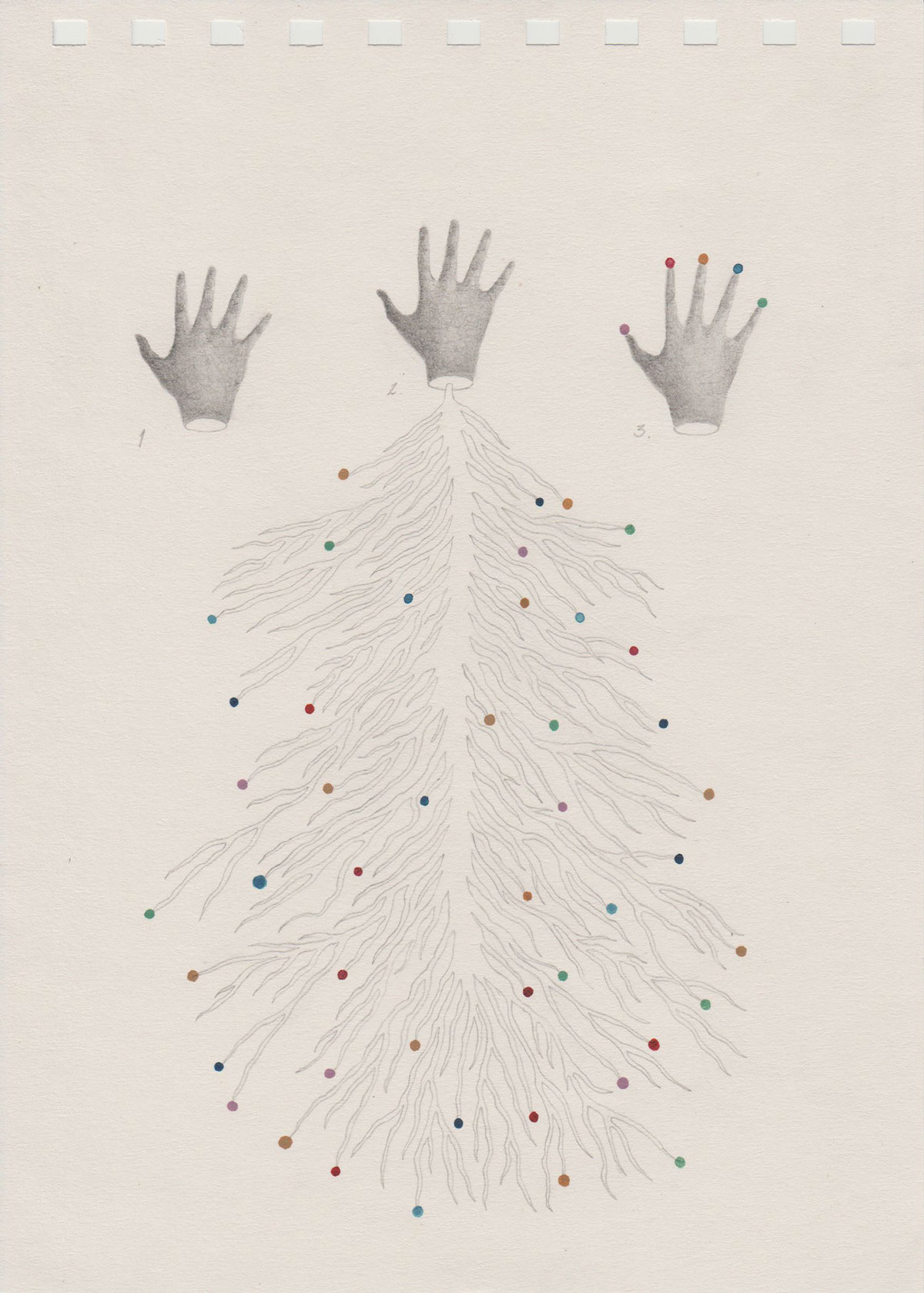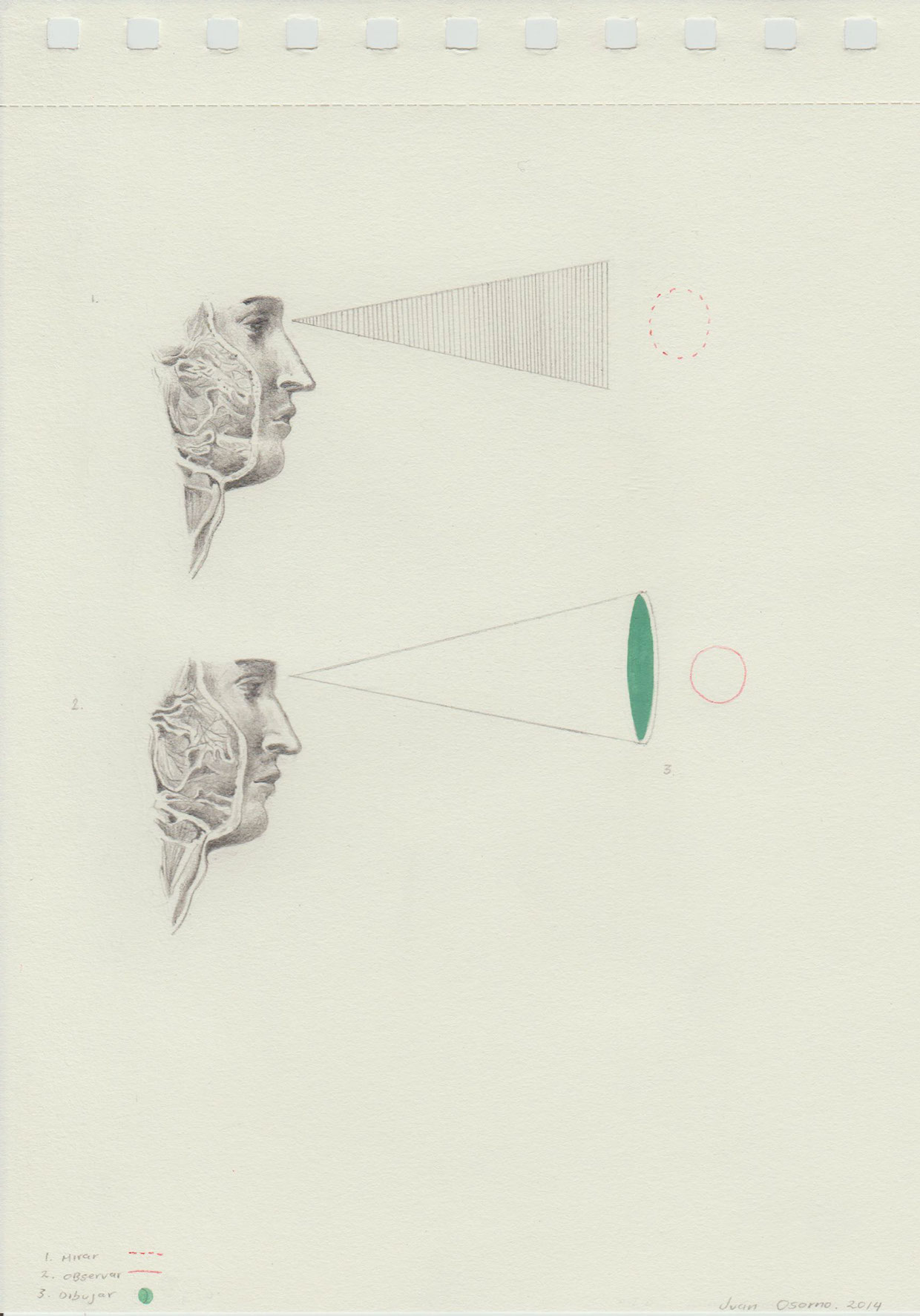 Mi trabajo toma como punto de partida la palabra “dibujo”. Me interesa pensar en cómo las diversas herramientas y situaciones que orbitan el acto de dibujar pueden generar nuevas posibilidades a la hora de entender esta práctica. Transito frecuentemente entre la gráfica, el objeto y la instalación, procesos que me permiten generar una mirada experimental entorno al oficio del dibujante. En este sentido no busco solamente dibujar cosas, sino más bien entender la experiencia de dibujarlas.