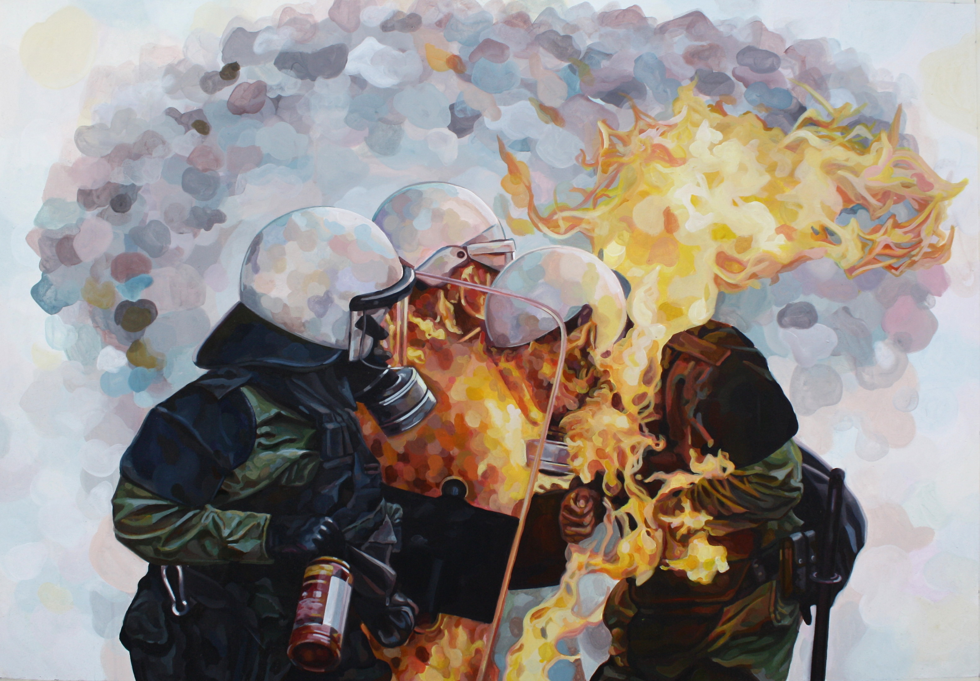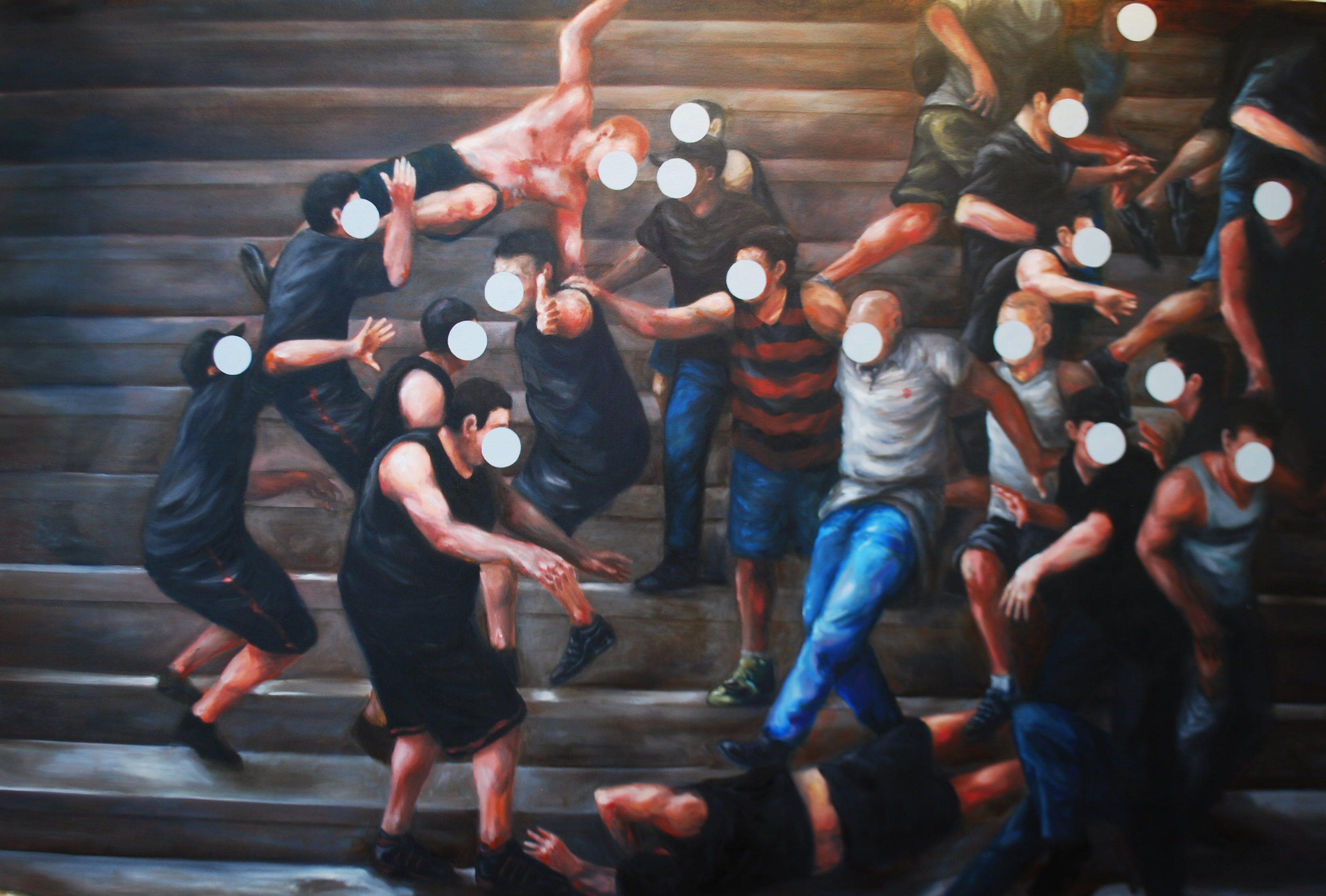 Motín aborda las preocupaciones sociales de cinco artistas desde un discurso generacional y una estética contemporánea. La violencia social recibe un tratamiento multiforme que va desde los -soldados- barrabravas, hasta las represiones policiales pasando por el maoísmo.