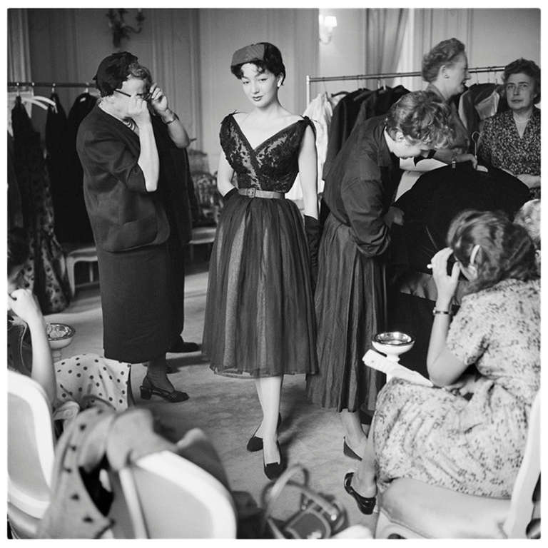 En ellas encontramos al mismísimo Monsieur Dior, vistiendo y ajustando los atuendos de las modelos antes de salir a la pasarela, o las 13 modelos que eligió para su desfile de 1953 (era un hombre supersticioso), al ilustrador Carl Erickson dibujando a una de las modelos para Vogue, e incluso una rara toma de la modelo y musa argentina Kouka.