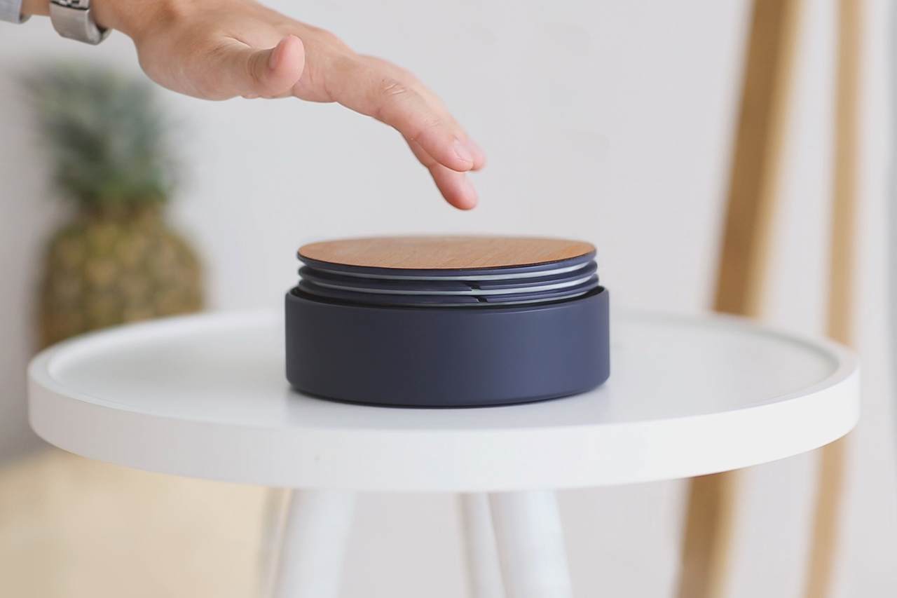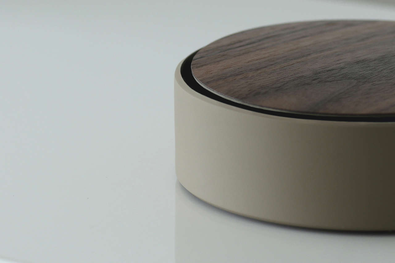 Con su diseño compacto y redondo, con madera real de cerezo o nogal, ECLIPSE puede vivir en la mesita de luz, escritorio, e incluso la pared. Un solo toque, gracias a su sensor capacitivo, hace que el dispositivo se abra, emitiendo un halo sutil para evitar estar buscando los cables a tientas en la oscuridad. Para cerrarlo basta con otro toque, que lo hace descender gradualmente y que la aureola se desvanezca.