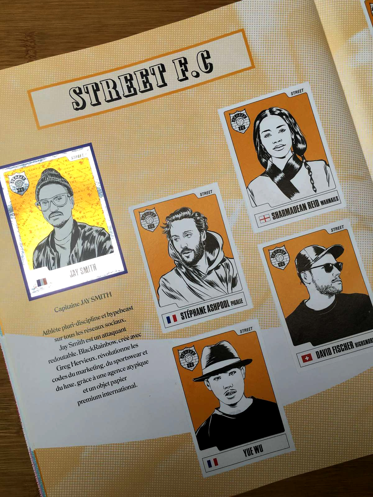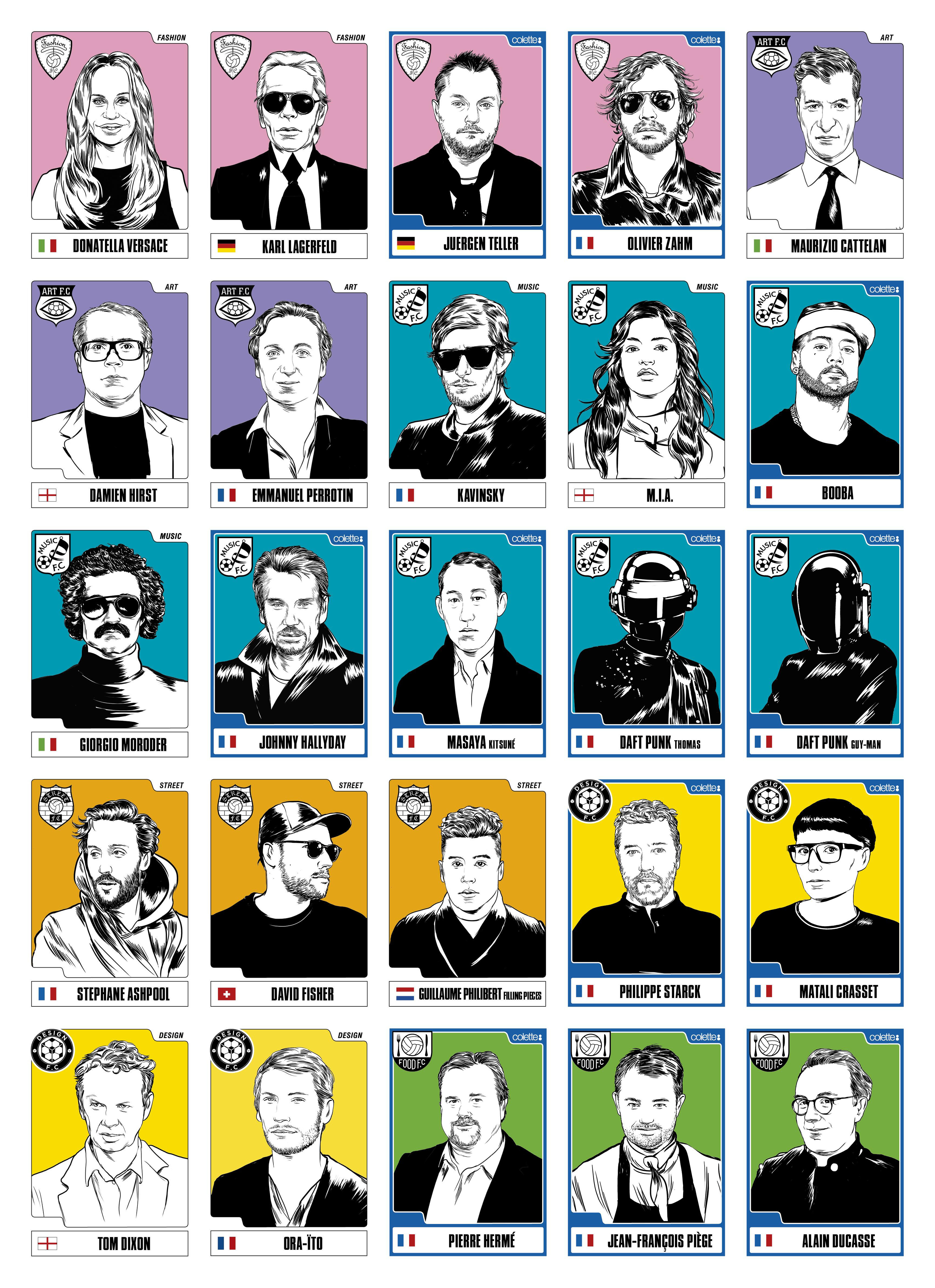 ¿Reconocen a alguno? Sí, el álbum contó con estrellas europeas, pero no del fútbol. El arte, la moda, la música, la comida y el diseño fueron los equipos. 6 selecciones compuestas por representantes de varios países del Viejo Continente, cada una con su respectivo capitán: Pedro Winter (música), Ora-ïto (diseño), François Simon (gastronomía), Jay Smith (street), Emmanuel Perrotin y Kamel Mennour (arte) y Mademoiselle Agnès (fashion).