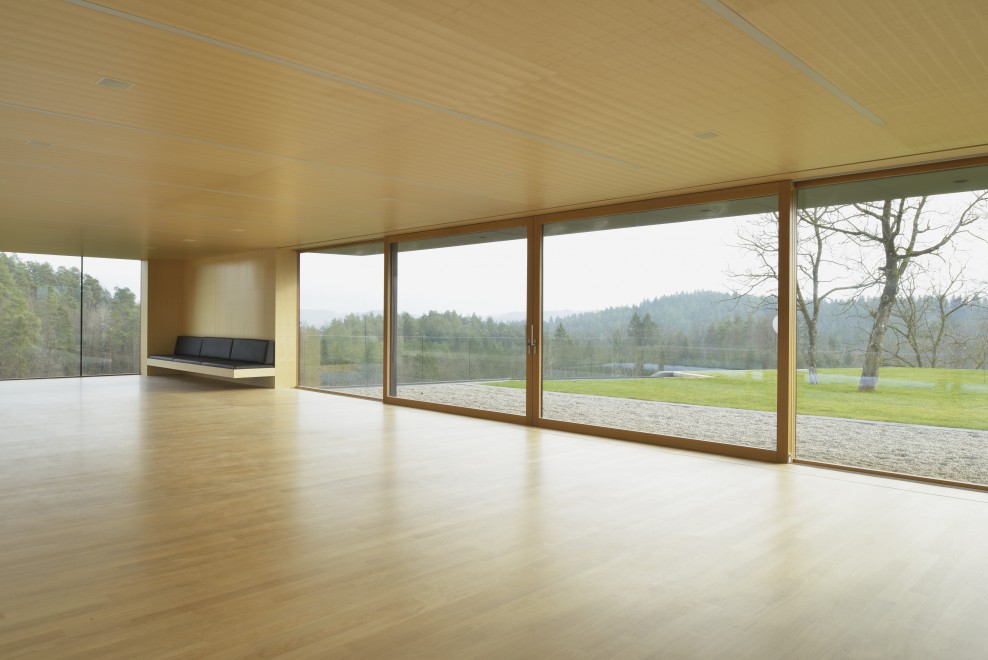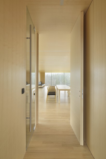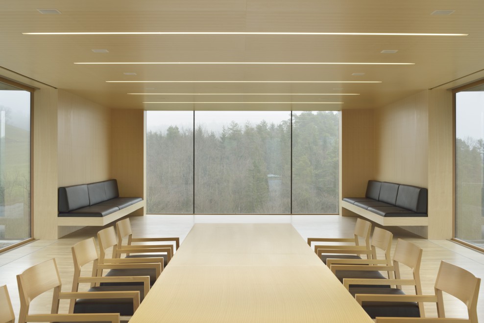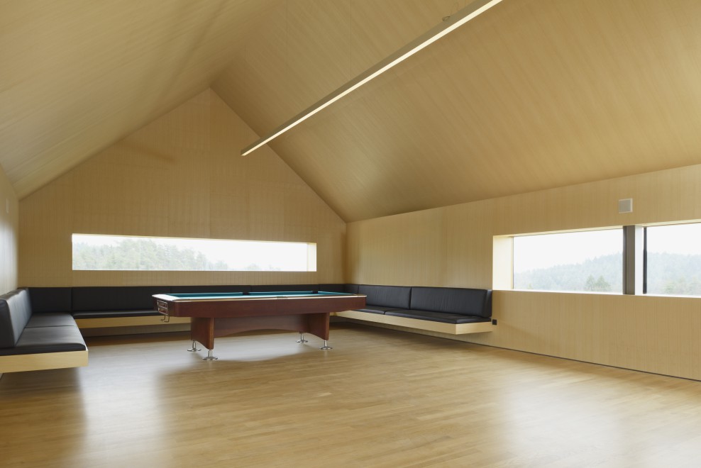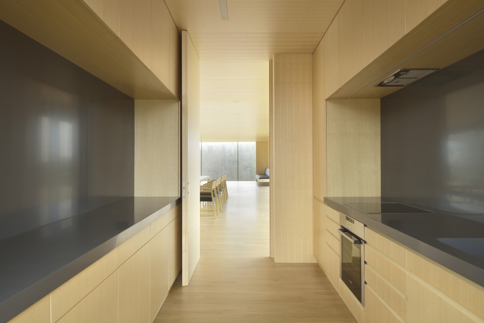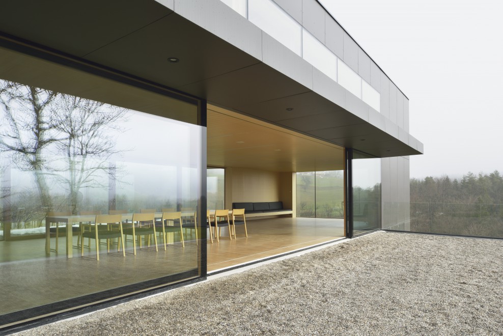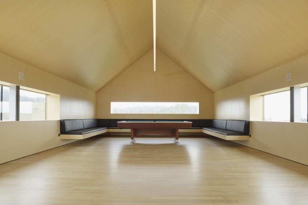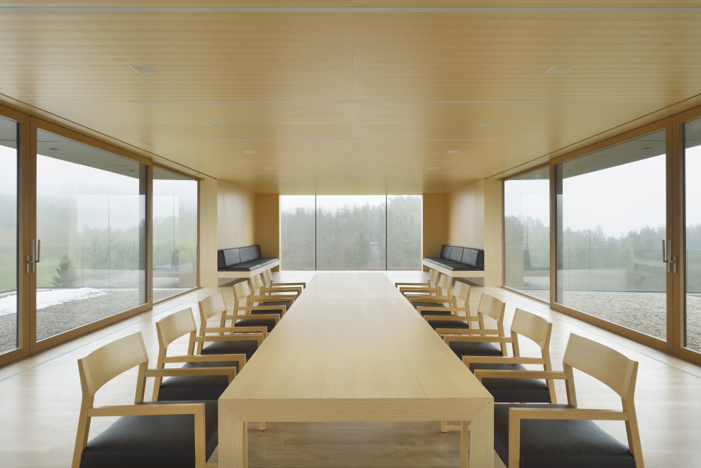 Es por eso que la belleza de este granero no está en una decoración ostentosa sino en sus proporciones armónicas, líneas estrictas y una instalación en el espacio que la hace parecer etérea y sólida a la vez.