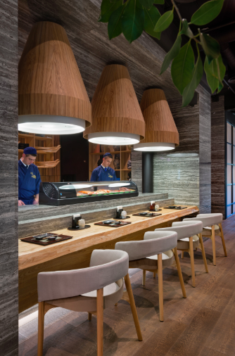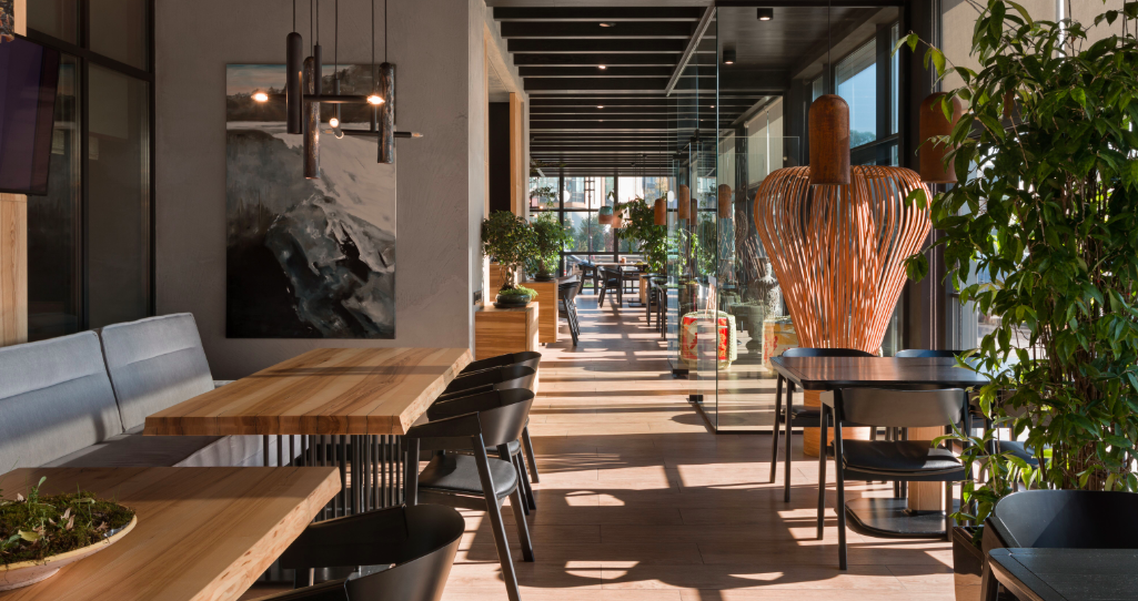 Este es el restaurante japonés más grande de Ucrania, diseñado por el estudio Sergey Makhno Architects a petición del chef Fujiwara Yoshihiro.