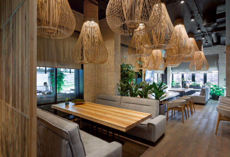 “La mayoría de los restaurantes japoneses son discretos, pequeños y definitivamente acogedores. Por lo tanto, prestamos mucha atención al diseño para poder albergar a 250 invitados al mismo tiempo. Y, sin embargo, hay una atmósfera de comodidad y tranquilidad” , – dice Illia Tovstonog, la arquitecta jefe de Sergey Makhno Architects.