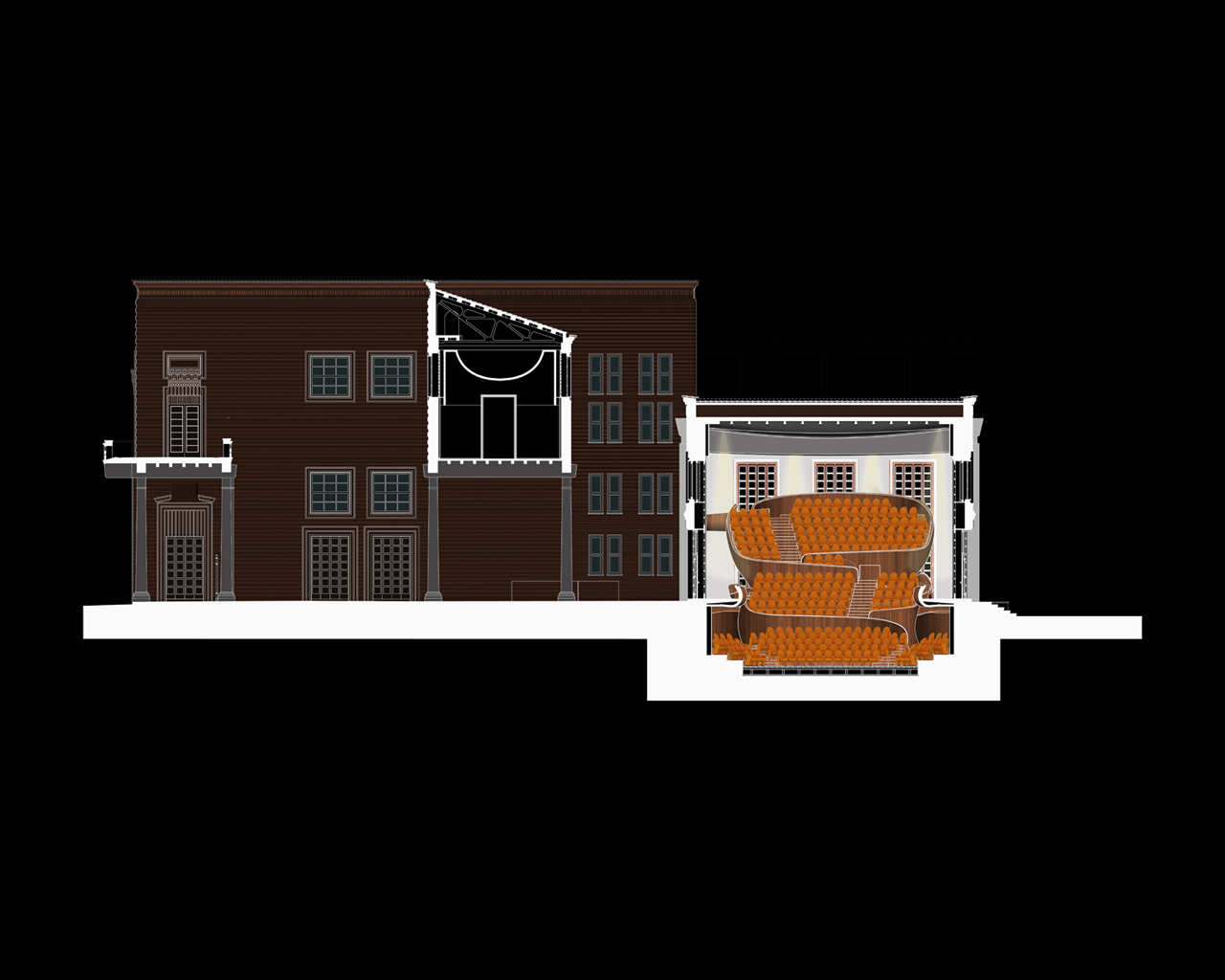 En este sentido, una de las decisiones que se tomaron en armonía entre diseño e ingeniería fue la de incluir en el auditorio un cielo raso modelado con formas y líneas redondas para optimizar la difusión del sonido: líneas combinadas con la necesidad de poseer una masa de 100 kg de superficie de metros cuadrados que ha contribuido a obtener un tiempo óptimo de reverberación.  Además, para el escenario central se eligió cedro amarillo de Alaska, un tipo particular de madera óptima para funcionar como caja de resonancia.