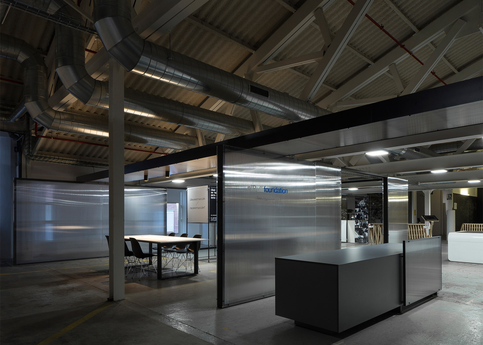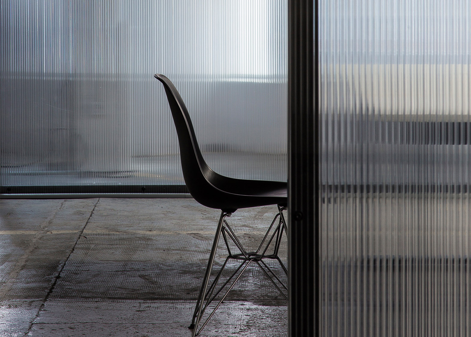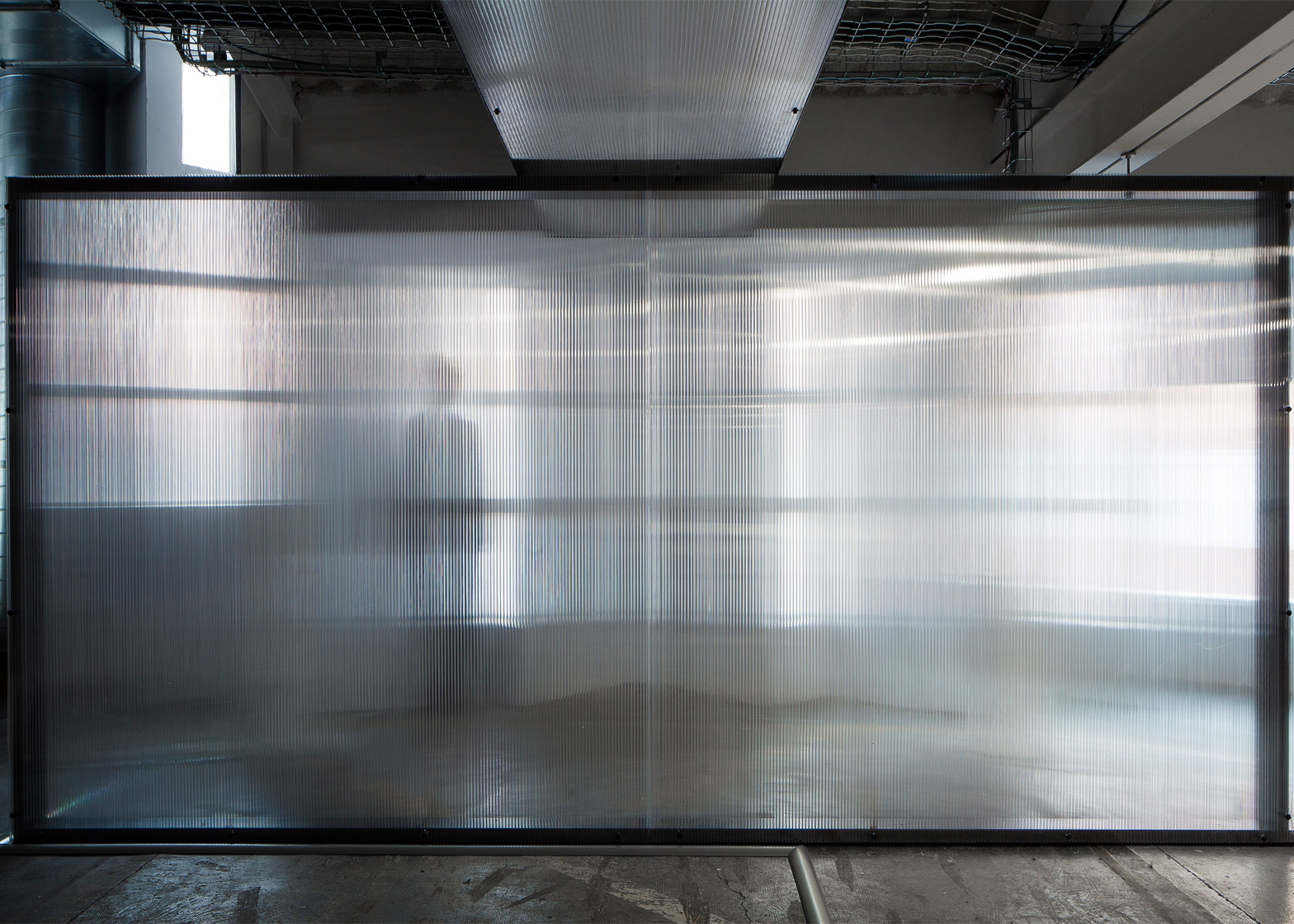 El resultado es un espacio austero, en el que, gracias a estas placas translúcidas, la luz natural que se filtra por las ventanas se ve esfumada, logrando un ambiente sereno y con aires industriales.