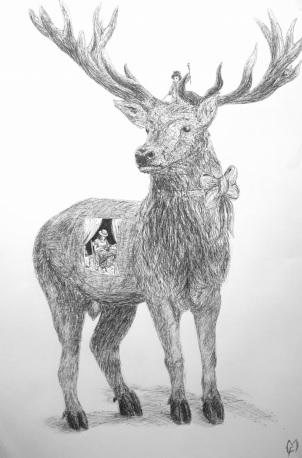 Mediante una fábula visual, metáforas y recursos del surrealismo, se busca concientizar al público sobre la fragilidad de los bienes naturales y la conexión con su ser interior. La exhibición cuenta con 12 dibujos de animales y una estructura de una ballena gigante con proyecciones internas, recreando la escena de una de las obras, donde los espectadores podrán ingresar e interactuar con ella y su movimiento va modificar tanto las proyecciones como el sonido. Cada dibujo consiste en la figura de un animal central, que lleva en sí mismo distintos compartimentos donde vemos varios personajes que en cada obra se reiteran. Se ven también, a modo de patrones, mujeres desarrollando actividades que buscan la elevación a un estado de conciencia superior, hombres con cetros, y otros ornamentos que se reiteran en todos los dibujos. Cada uno de estos compartimentos representa un espacio sagrado, donde se desarrollan distintas experiencias. Dichos espacios, son recreados en la ballena, posibilitando una situación participativa para el público, donde -mediante la ayuda de un Kinect y la ambientación de los espacios-, el espectador experimenta esta búsqueda de “elevación” dentro de la obra, acercándose a la experiencia artística y de creación del autor.