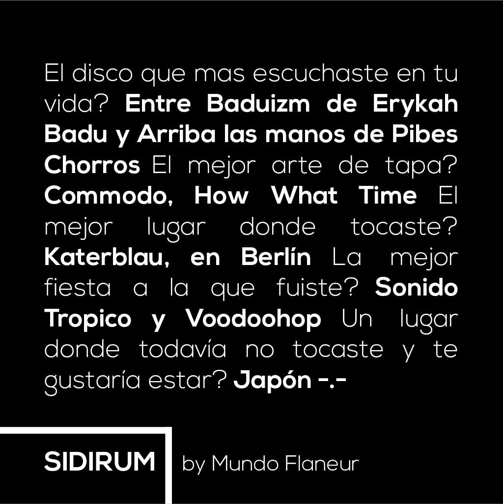 Estuve un tiempo sin hacer música nueva pero ahora estoy justamente en la etapa de producción de un próximo disco. Va rumbeando desde la pista de baile hasta algo más abstracto e introspectivo .