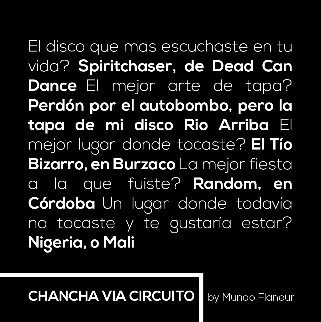 El orden es el siguiente, primero SidiRum pregunta y Chancha Via Circuito responde: