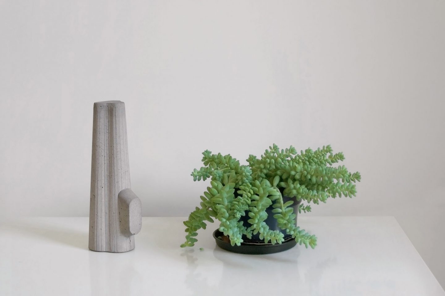 En Concreto es una colección de objetos estrechados que explora la materialidad del hormigón y su referencia cultural a la arquitectura moderna. Inspiradas en el estilo arquitectónico “béton brut”, las esculturas están moldeadas en diferentes texturas y geometrías, con torres con surcos y suaves superficies curvas.