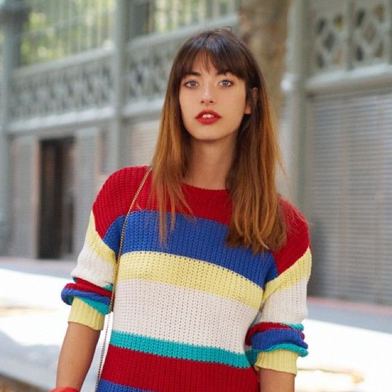 Otra referente de este tipo de flequillo es la top danesa, Freha Beja, que lo luce espeso y revuelto con una melena cuidadosamente despeinada, de aires grunge. Seguidora de este estilo es la modelo Georgia May Jagger que se acentúa su look rockero con un flequillo gringe muy desenfadado.