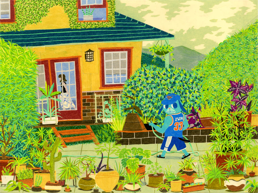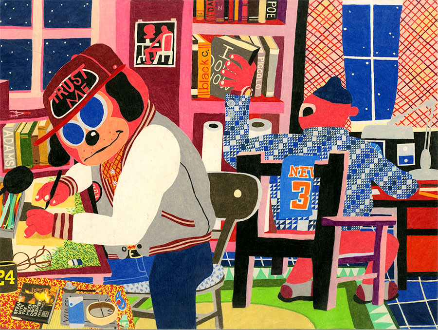 Influenciado por muchos artistas, distintos acontencimientos de su vida y los dibujos animados principalmente, el trabajo de Andrew nos es familiar y amigable; lleno de color e inocente.