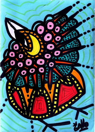 Gallo ha logrado dar a luz una producción que reúne en forma espontánea elementos diversos como la estampa, el arte gráfico, el diseño industrial o el street art.