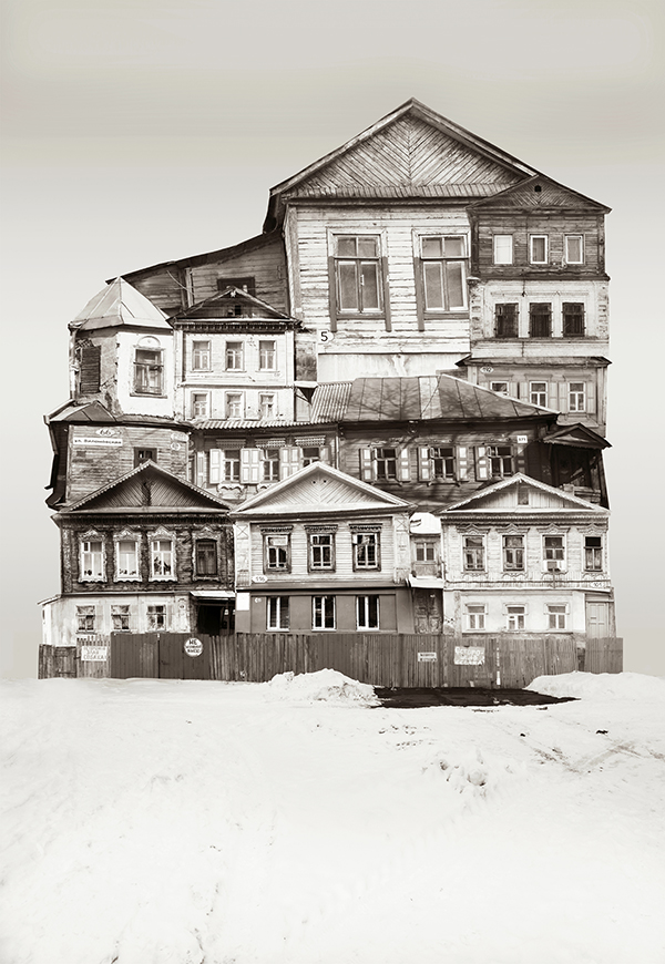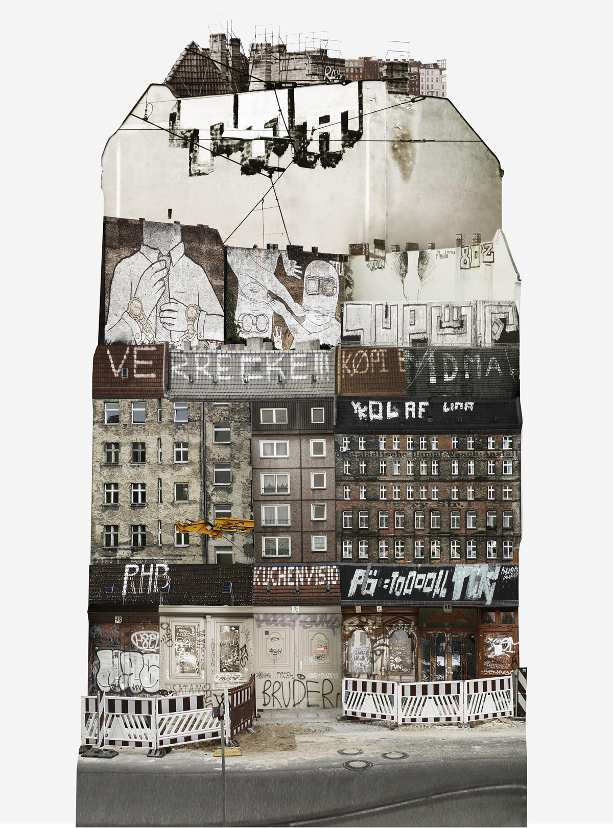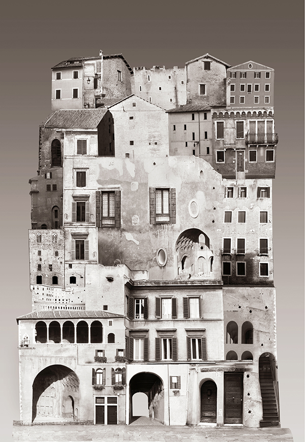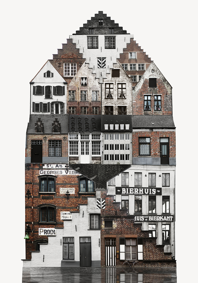Cada imagen es una composición de varias fotos en forma de collage, que construyen una sensación de espacio. A través de docenas de asociaciones y detalles visuales de diversas construcciones de la ciudad, este edificio único es la síntesis perfecta de cada lugar que visita.