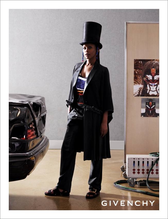 Siempre es novedad cuando una marca usa a una celebrity (ya sea actriz o cantante) en vez de una modelo convencional para sus campañas. Givenchy no es la excepción en una temporada con mucha apuesta a las famosas (léase Marc Jacobs con Miley Cyrus y lo último de Louis Vuitton con un batallón de actrices) convocando a la cantante estadounidense Erykah Badu para dos tímidas intervenciones en su campaña para la primavera/verano 2014.