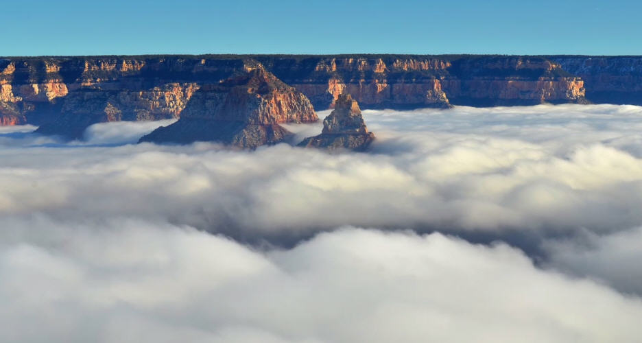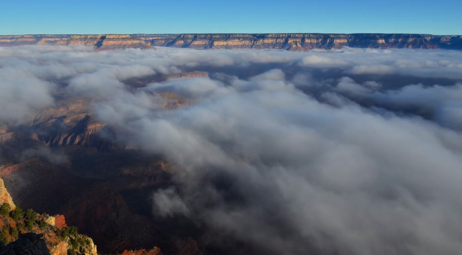 El 29 de Noviembre del 2013, el Gran Cañón del Colorado experimentó una inversión de temperatura, en donde el aire fresco salía desde el fondo del Cañón y se mezclaba con el aire caliente que venía desde arriba, creando una capa de niebla espectacular que hacía que parezca un “mar”.