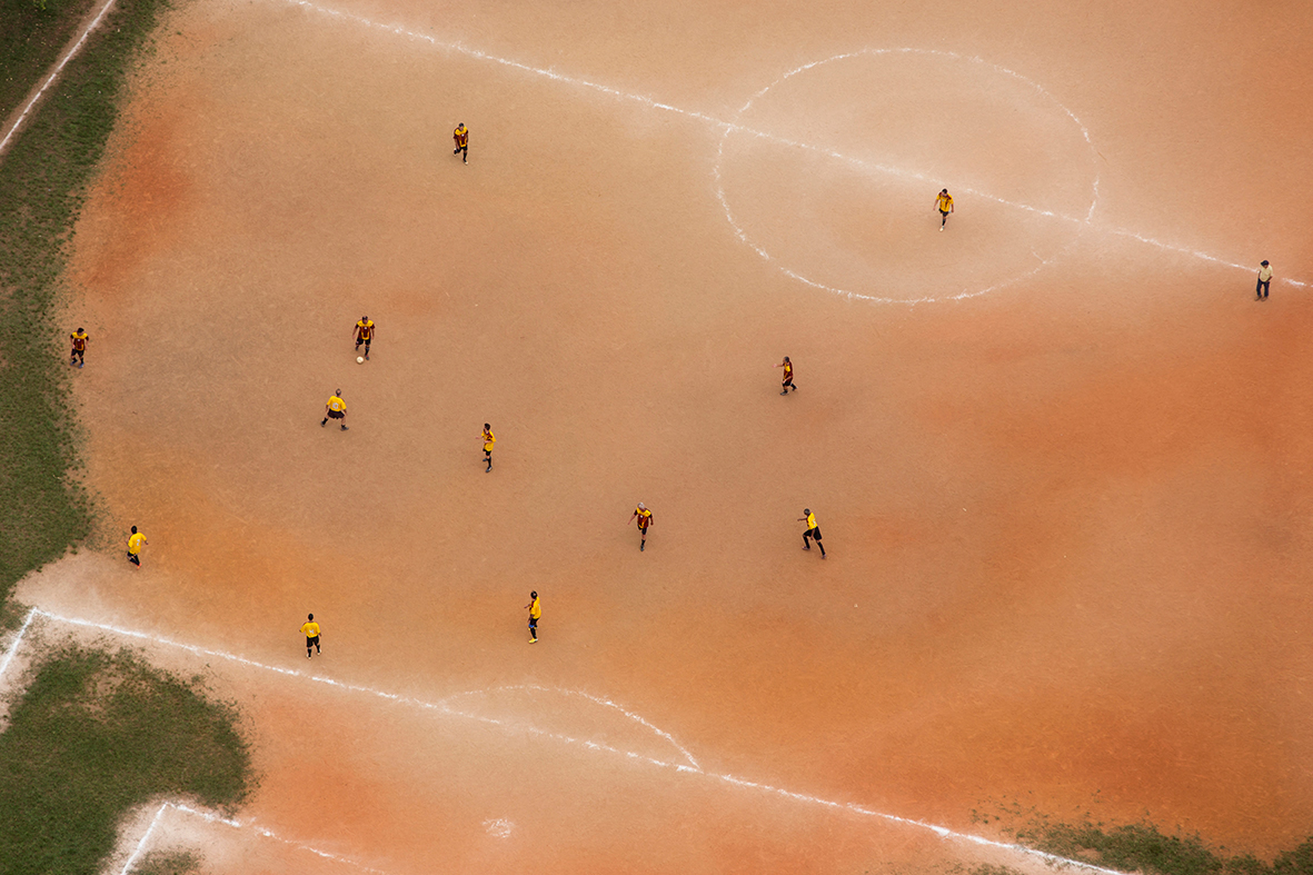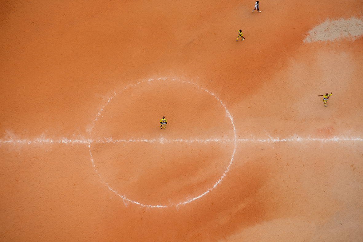 Potreros de tierra, en algunos se asoma algo de pasto, todos estos “terraos”, son espacios publicos que han sido ganados por la gente que no tiene nada y muestran la urgencia por espacios como estos, en donde se pueda ejercitar la pasión que se vive por el futbol en Brasil.