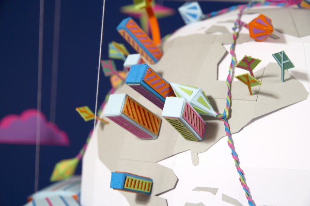 El dúo francés Zim y Zou utilizó su talento en la construcción y el corte para componer esta hermosa estructura llamada Happy Planet para la marca IBM.