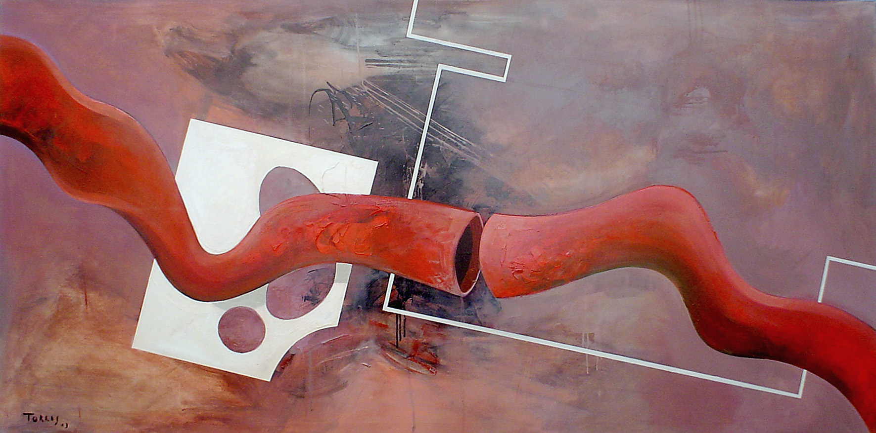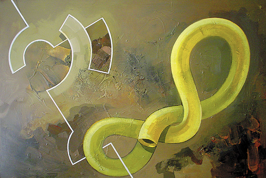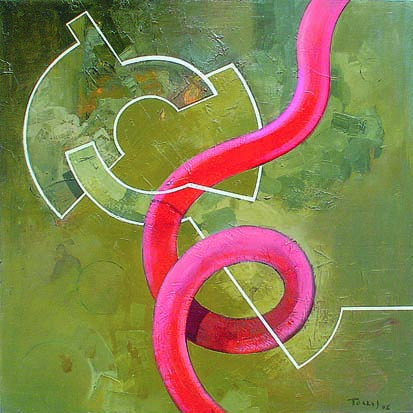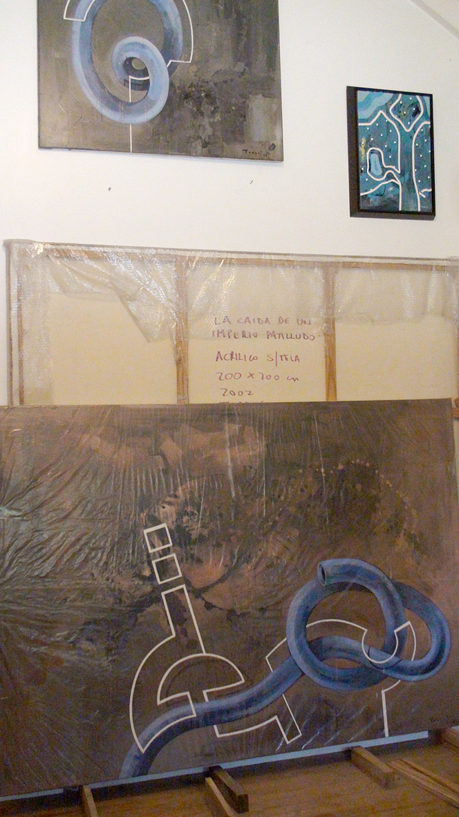 En la actualidad trabaja bajo las influencias de algunos movimientos como el informalismo, el pop mas crudo y sucio, el arte povera… a eso le sumo la necesidad social y económica de intentar reciclar parte de la basura que genera, investigando en como reutilizar los elementos plásticos con los que se ve obligado a convivir al comprar la comida (envases, bolsas, envoltorios de diversos alimentos)