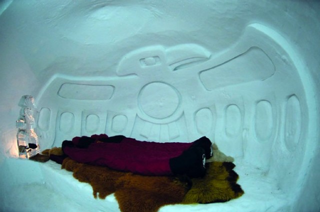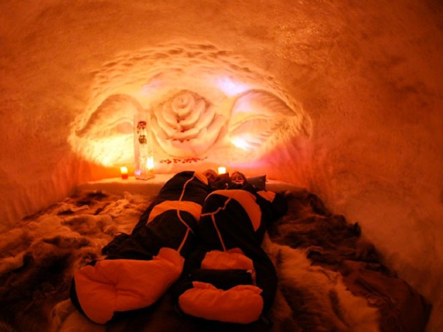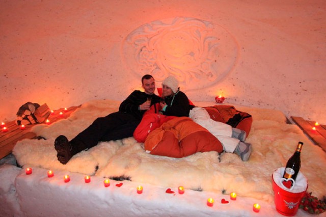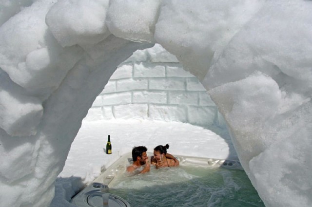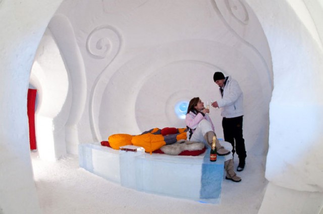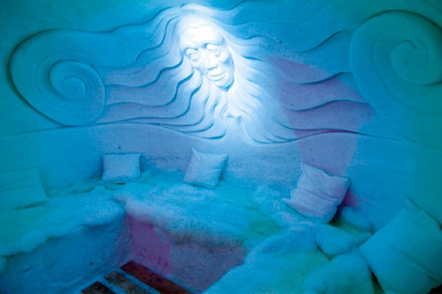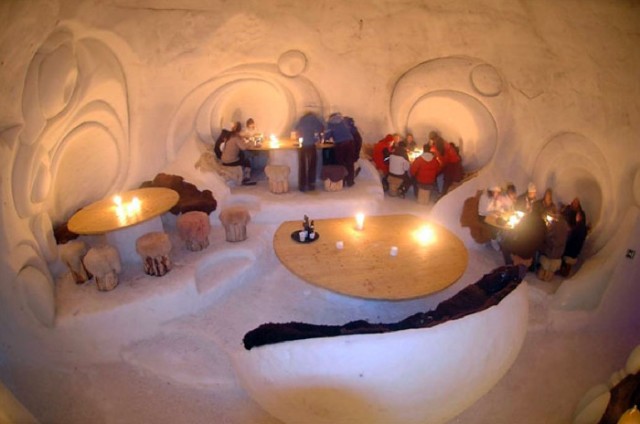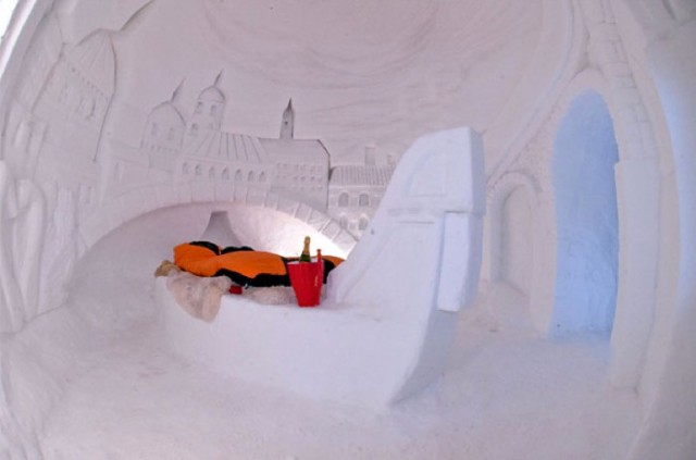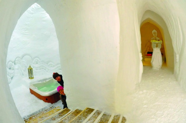 Reconstruida en cada temporada con más de 3.000 toneladas de nieve, que ofrecen un entorno muy inusual en el medio de la montaña.