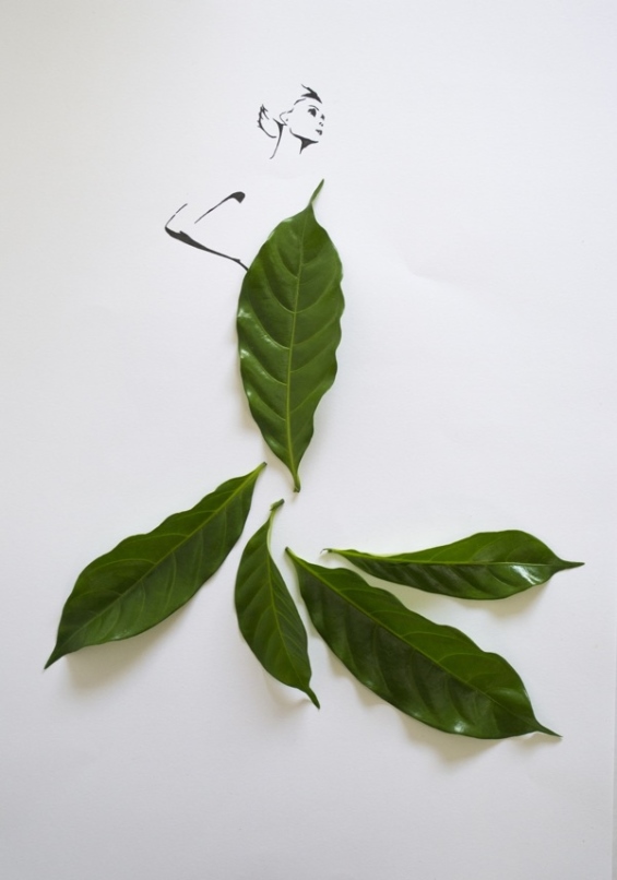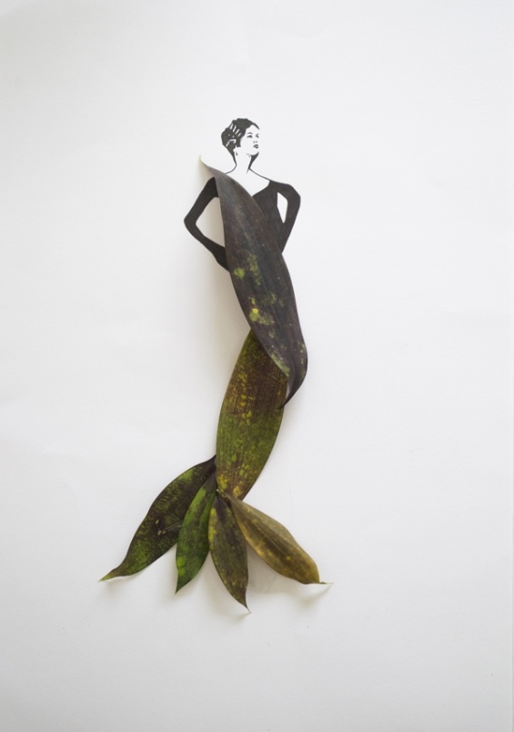 Ling crea estas obras ilustrando y agregando distintas hojas para formar estas geniales ilustraciones de moda.