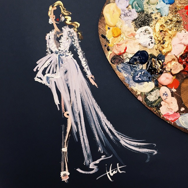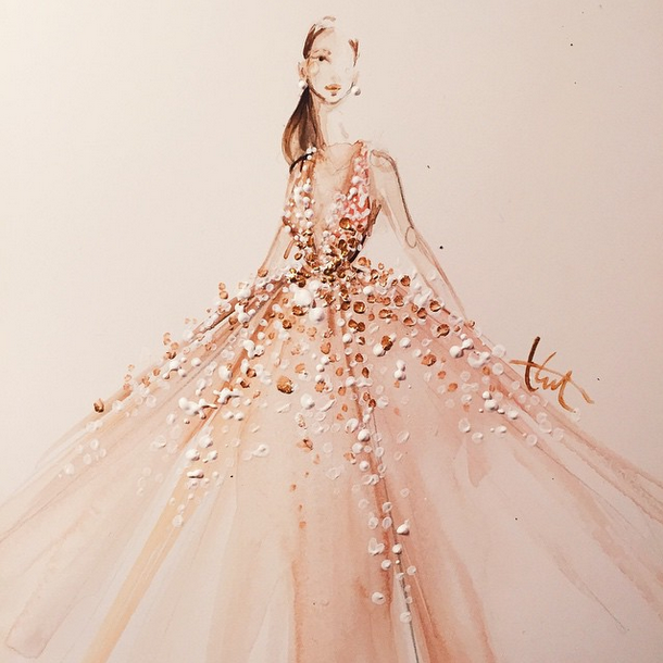 Muchos de sus trabajos se inspiran en las pasarelas de las semanas de la moda más importantes del mundo, aunque de vez en cuando podemos encontrar algunas ilustraciones con vestidos vistos en alfombras rojas, películas e incluso trabajos profesionales a encargo por diferentes casas de moda.