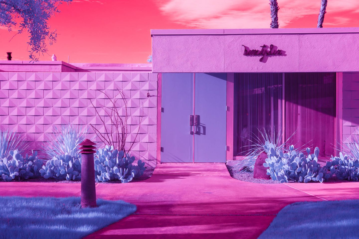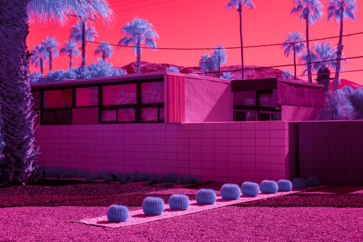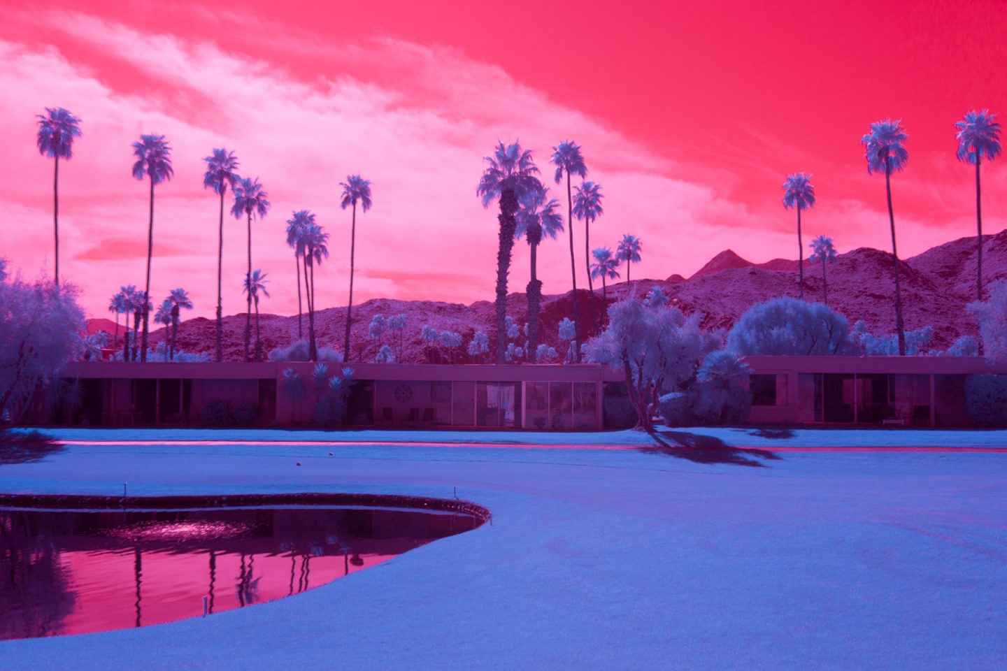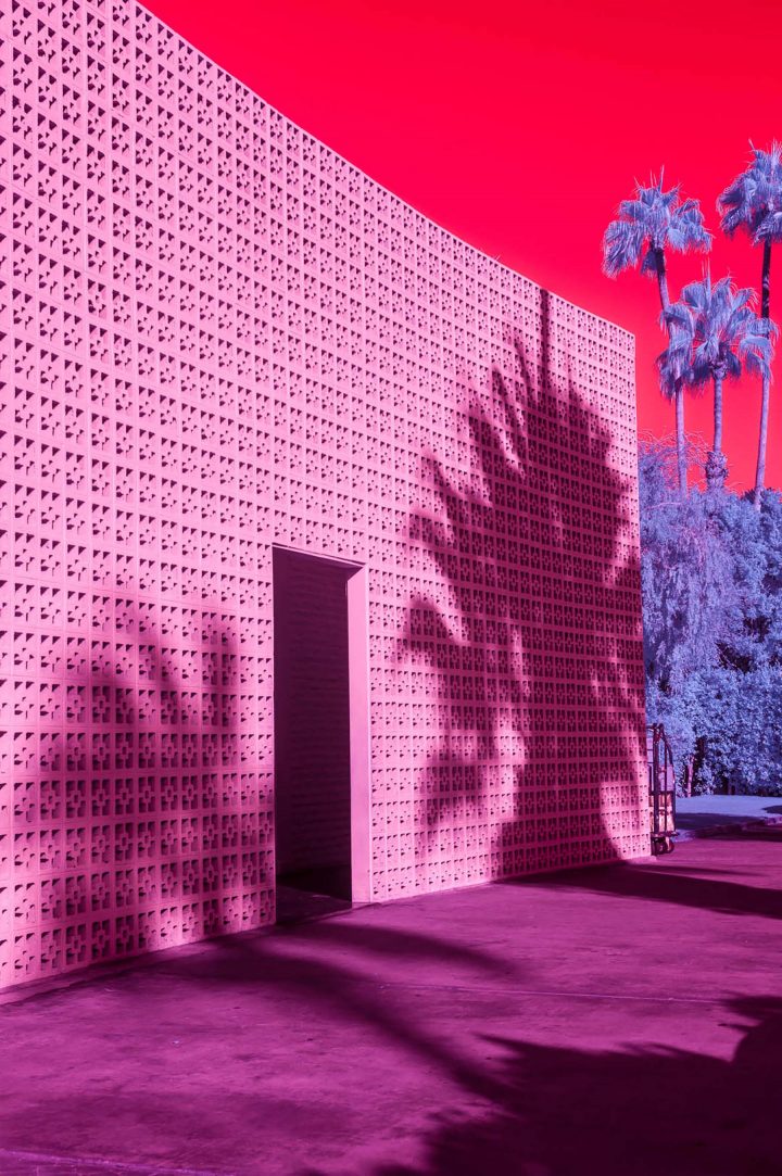 Después de haber fotografiado la arquitectura moderna, los autos antiguos y el paisajismo inmaculado universalmente asociado con Palm Springs, Kate quería mostrar la ciudad bajo una luz diferente, específicamente infrarroja. Usando varios filtros de infrarrojos con una cámara sin espejo Full Frame de Sony, Kate describe la ciudad como una serie de paisajes oníricos surrealistas.