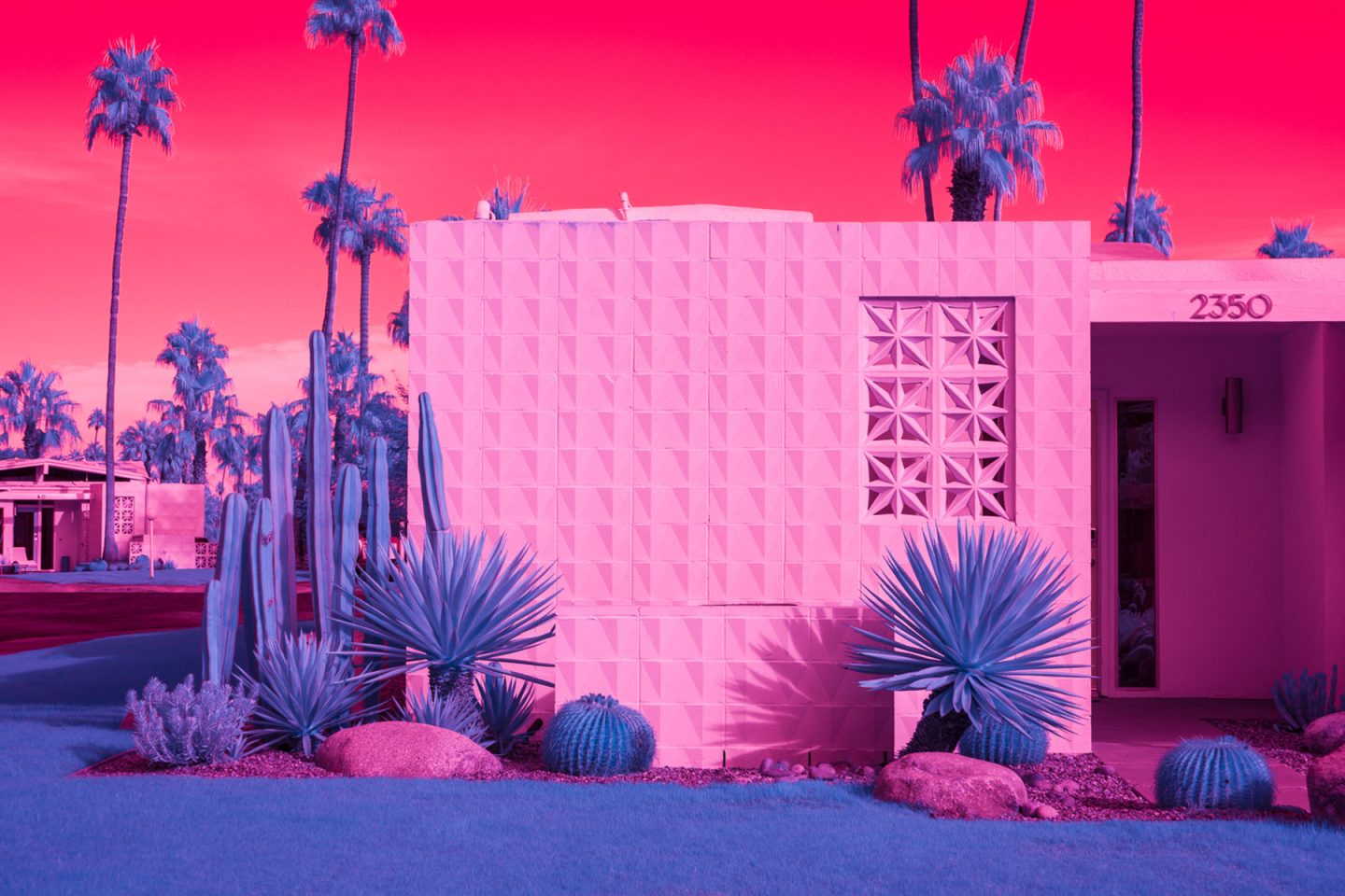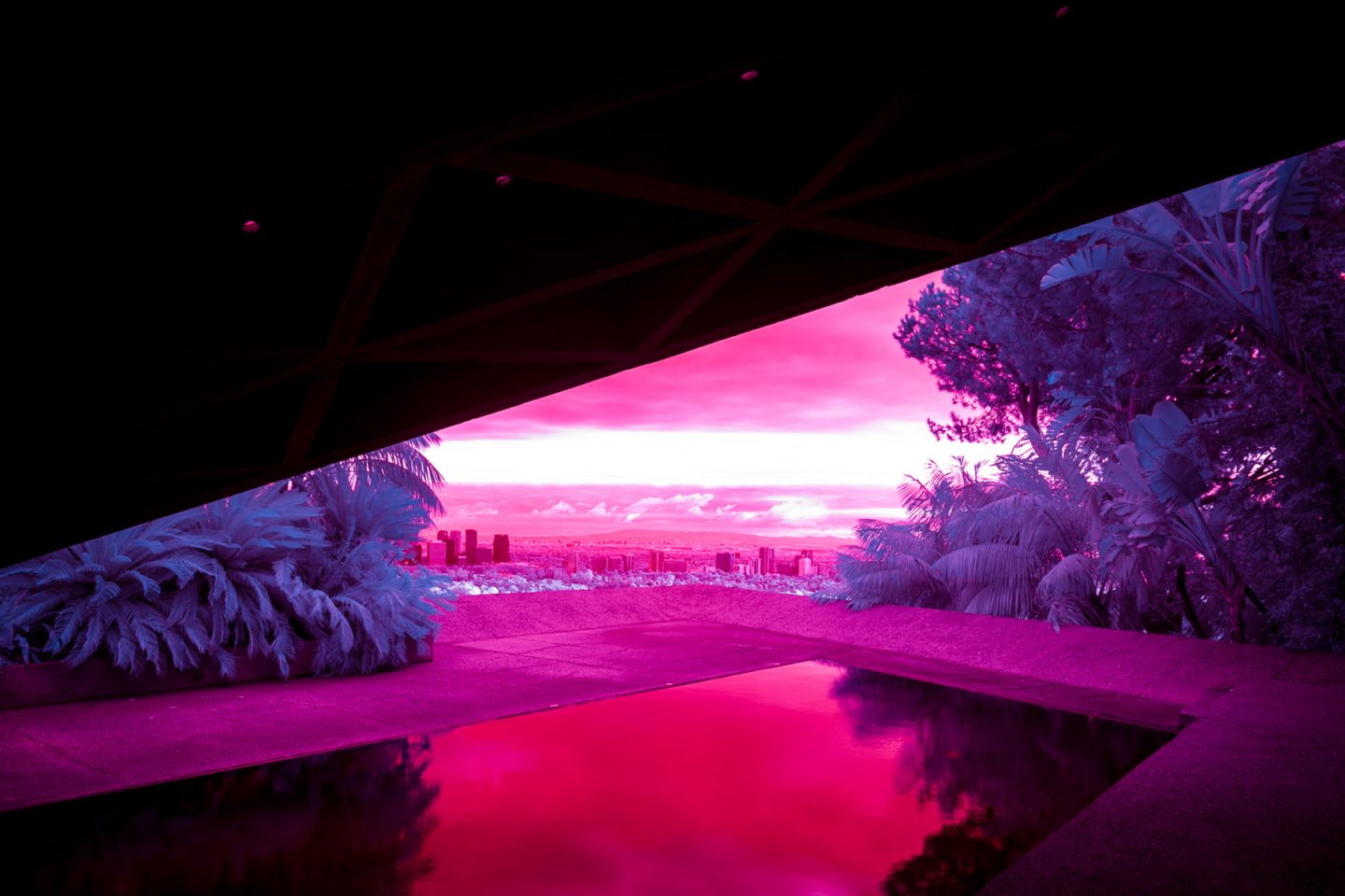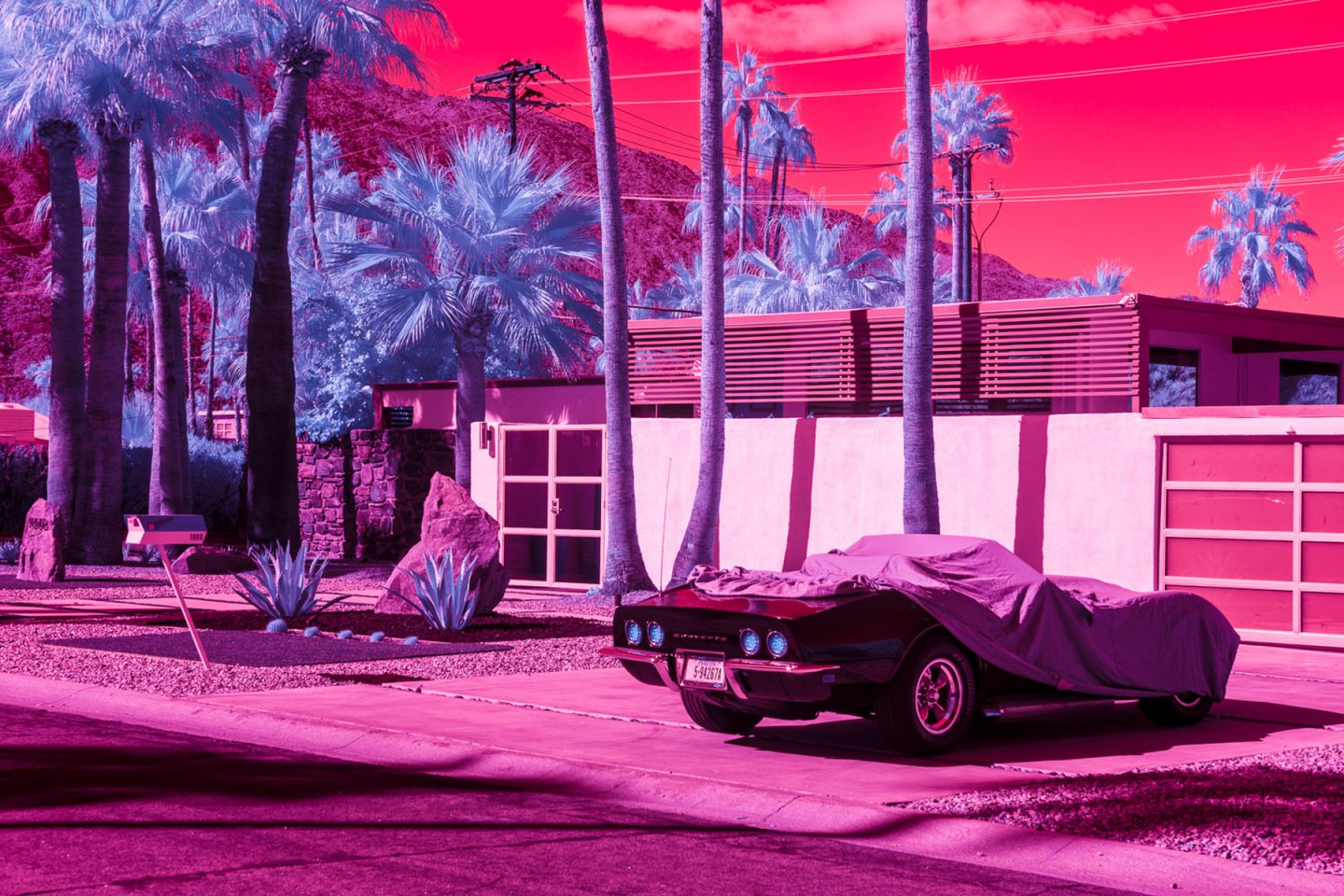 Después de haber fotografiado la arquitectura moderna, los autos antiguos y el paisajismo inmaculado universalmente asociado con Palm Springs, Kate quería mostrar la ciudad bajo una luz diferente, específicamente infrarroja. Usando varios filtros de infrarrojos con una cámara sin espejo Full Frame de Sony, Kate describe la ciudad como una serie de paisajes oníricos surrealistas.