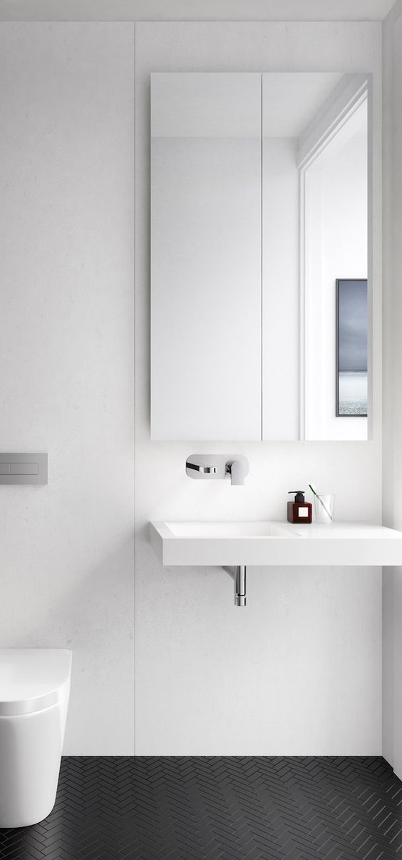 Los espejos son la mejor forma de hacer que un ambiente parezca más grande (en casa, por ejemplo, revestimos una pared completa del toilette para duplicar la percepción del espacio). Los espejos finitos y altos son una gran solución porque no solo reflejan la luz para que el lugar se amplíe, sino que hacen que el ojo vaya para arriba.