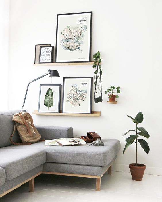 Olvidate de las fotos panorámicas y apostá a todo lo que sea vertical. Un plus? probá apilando los cuadros uno arriba del otro.