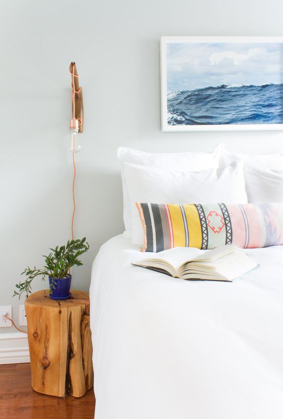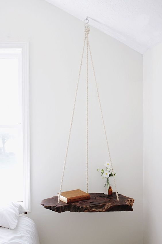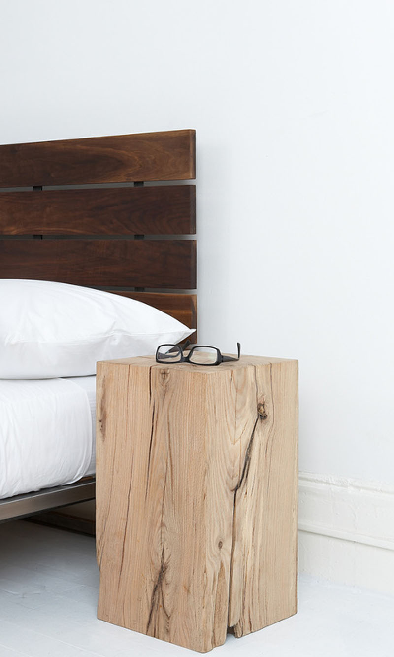 No hace falta pasar por una casa de decoración: en cualquier lugar donde vendan leña, tratá de conseguir el corte de tronco más grande que tengan, y voilà! (eso sí, recordá rociarlo con insecticida previo a instalarlo en la habitación, para evitar amigos indeseados en la cama). ¿Estás con ganas de darle un toque más interesante? Probá la versión colgante con este DIY.