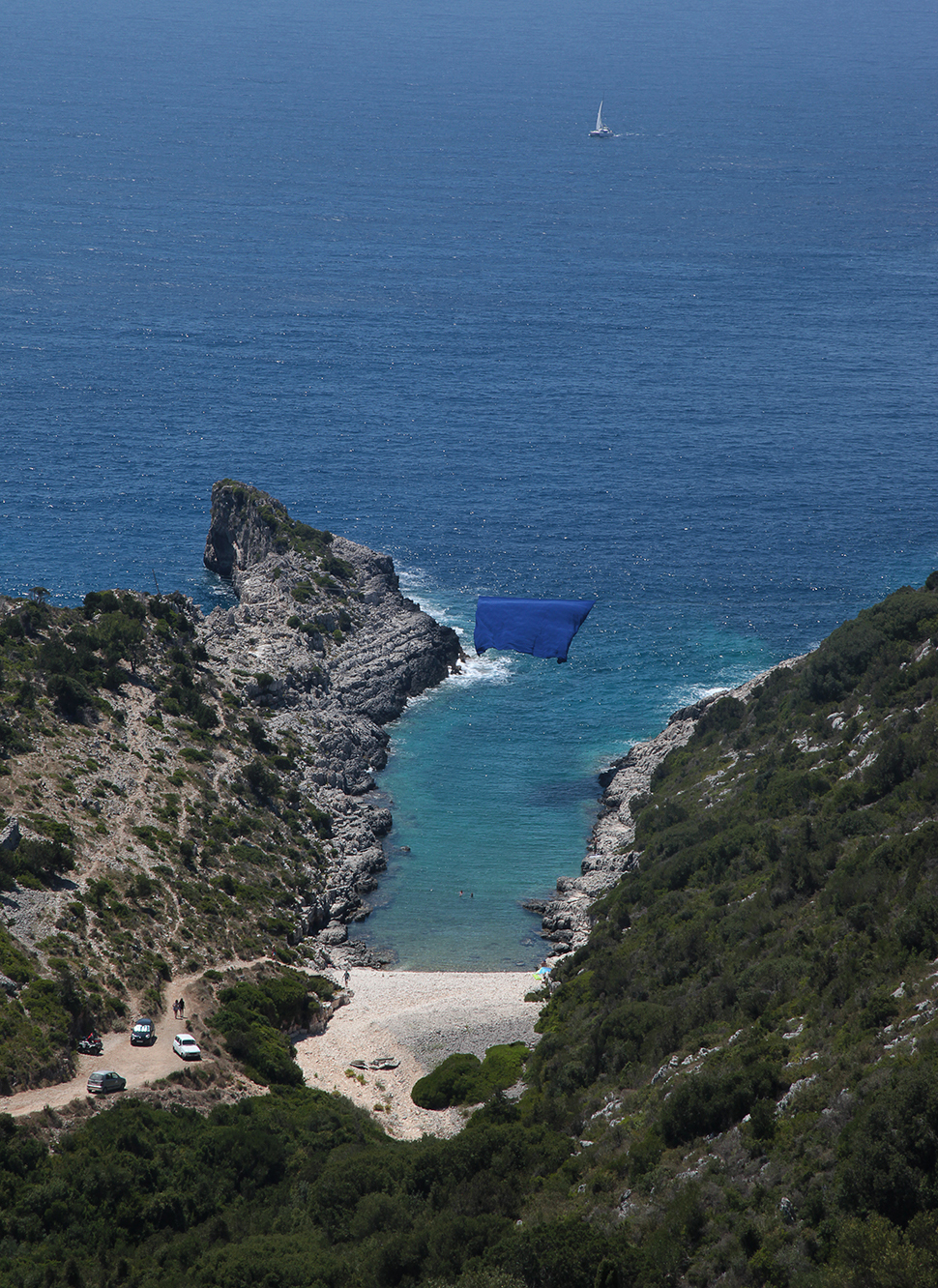 “Interface” es una instalación de landart en la bahía de Avlaki en la isla griega de Paxos, realizada por el artista Michael Sebastian Haas.