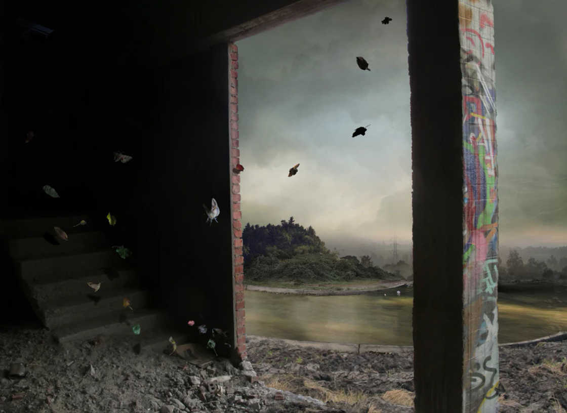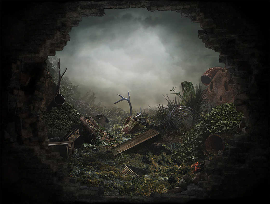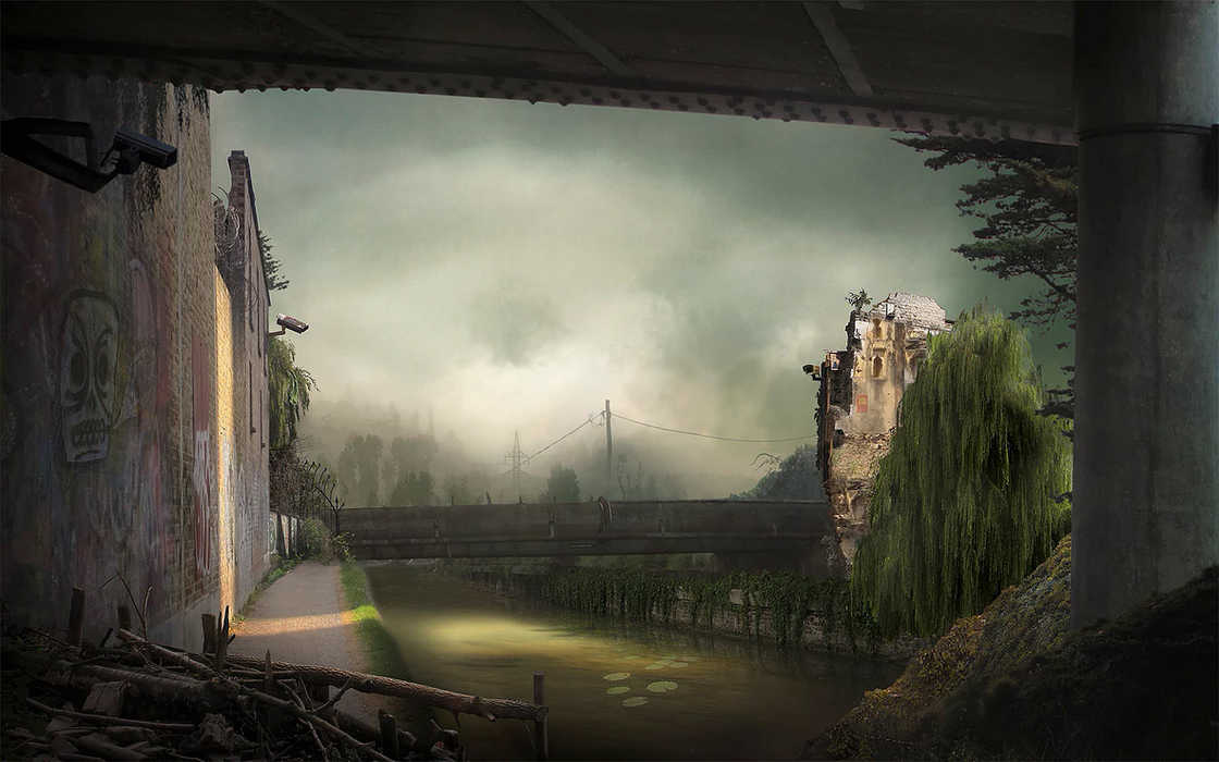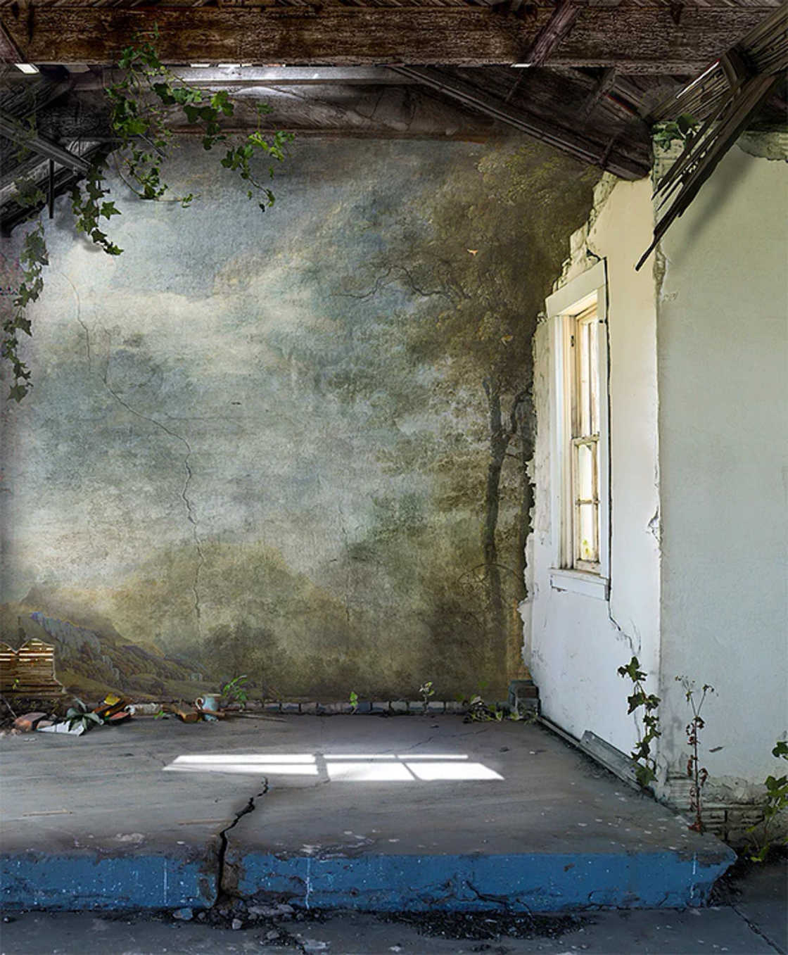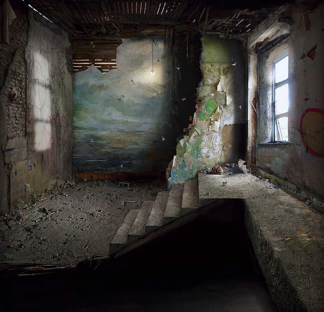 Con una mezcla de matte painting, collage y retoque digital, la artista británica Suzanne Moxhay invita a la naturaleza a lugares abandonados. Bosques, lagunas, una mezcla de arbolitos con musgo y una buena pizca de surrealismo resulta en una serie encantadora.