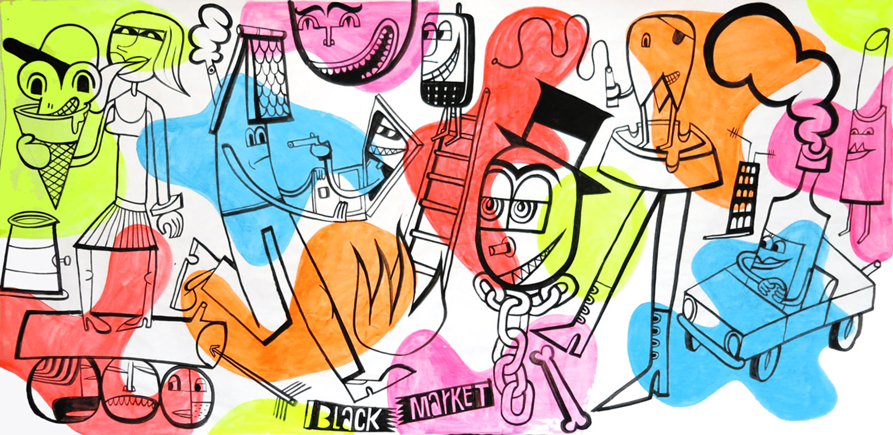 Jim Avignon empezó su carrera en los años 80s en Alemania, haciéndose conocido como el ´pintor del movimiento techno´ de esos tiempos. Sus diseños de colores vivos se hicieron rápidamente populares por su mensaje de humor e ironía respecto a la industria del arte tipo “high-art”. En su multifacética carrera de pintor, músico, performer, gestor cultural, y curador, Jim ha hecho un esfuerzo por exhibir su trabajo en circuitos poco convencionales de diferentes ciudades del mundo para precisamente hacer un gesto de provocación al excesivo elitismo de la industria artística y cultural. En este sentido, su eje ha estado puesto en usar el sarcasmo como herramienta de crítica a las desigualdades sociales.